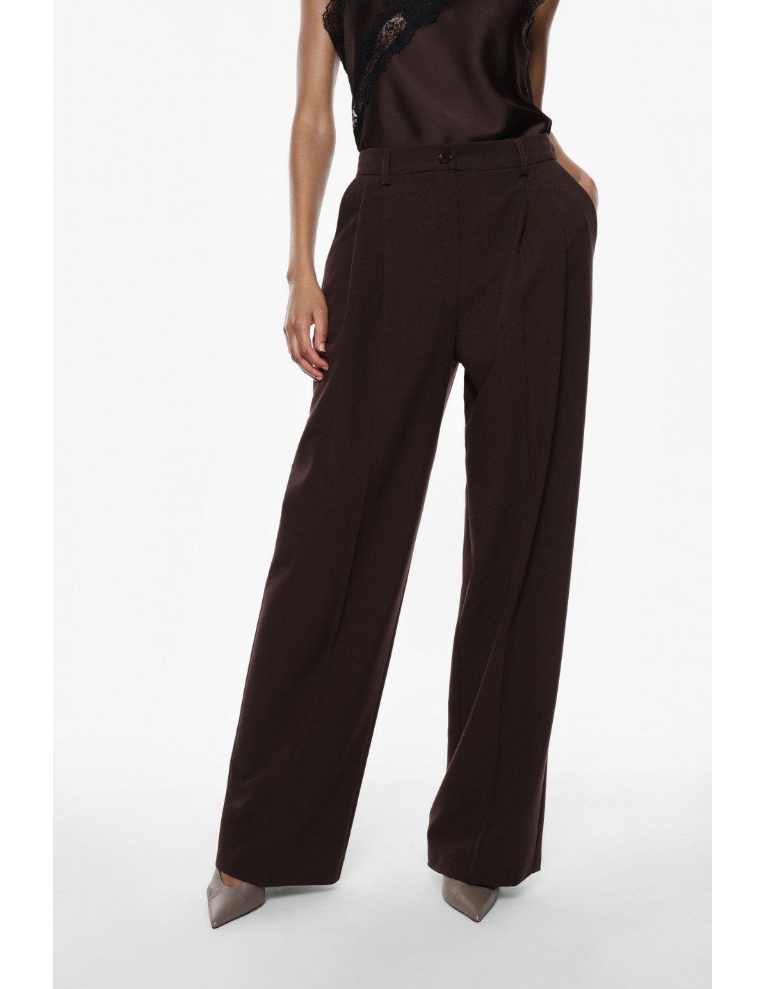 Pantalon palazzo en drap sergé – Taille haute à pinces