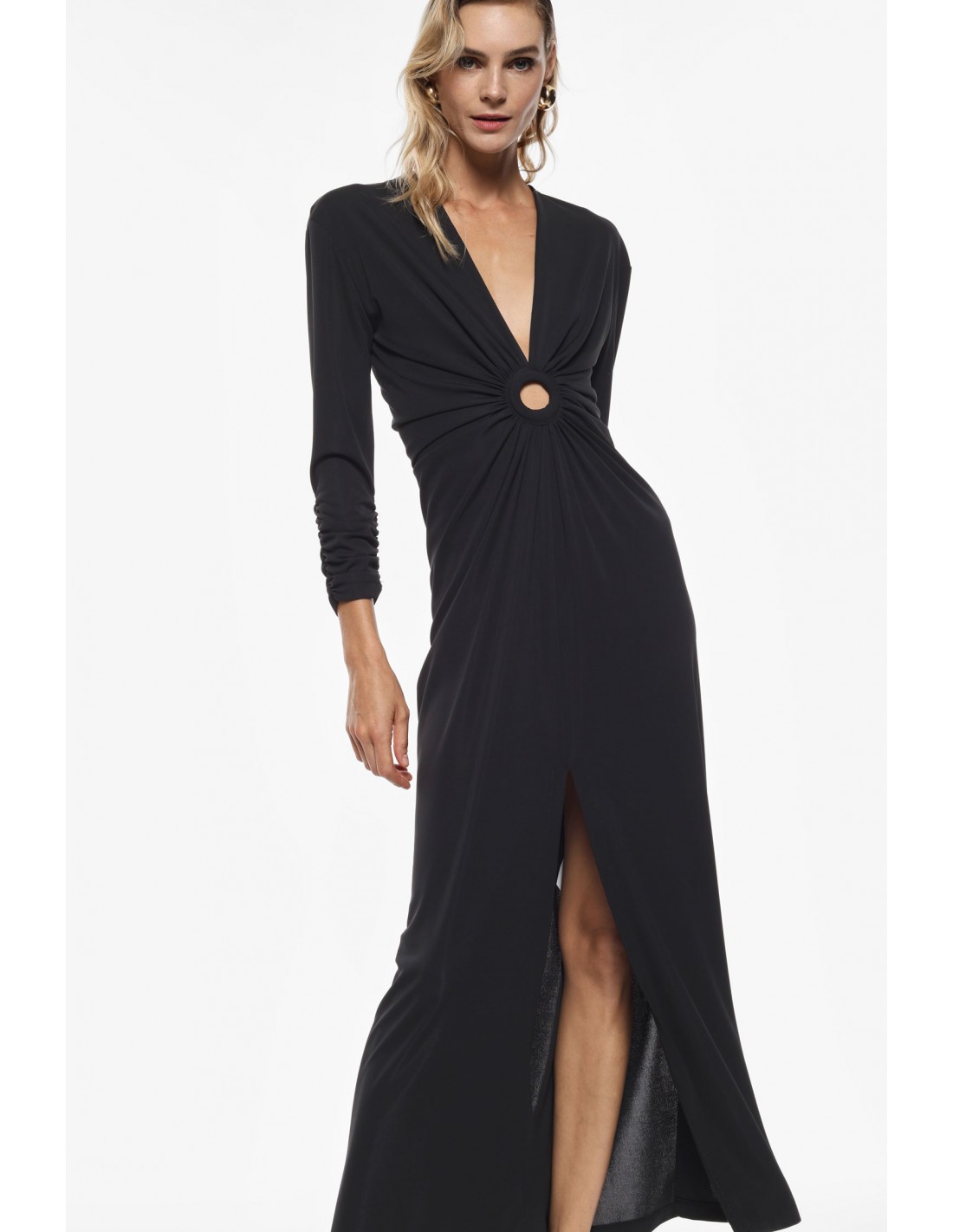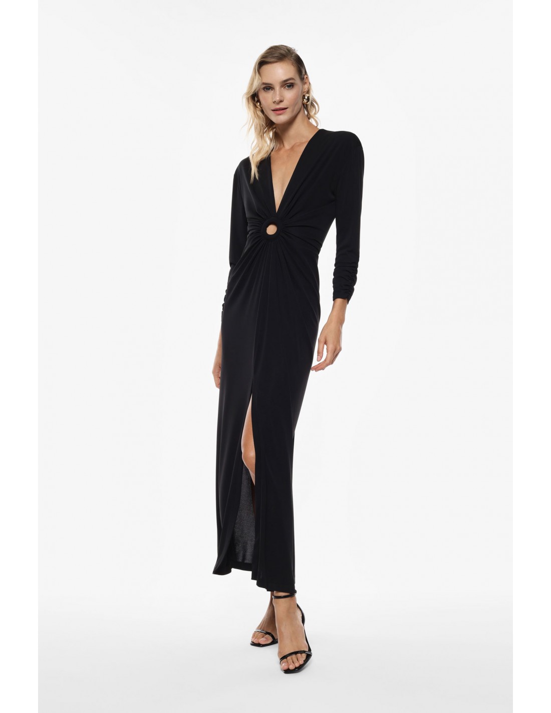 Sublimez vos soirées avec cette robe longue Imperial au charme envoûtant. Sa coupe ajustée, façon demi-fourreau, épouse la silhouette avec élégance tout en restant confortable grâce à son tissu crêpe stretch. Le décolleté profond est magnifié par un drapé poitrine, resserré par un bijou ajouré qui dévoile subtilement la peau pour un effet raffiné et sensuel.