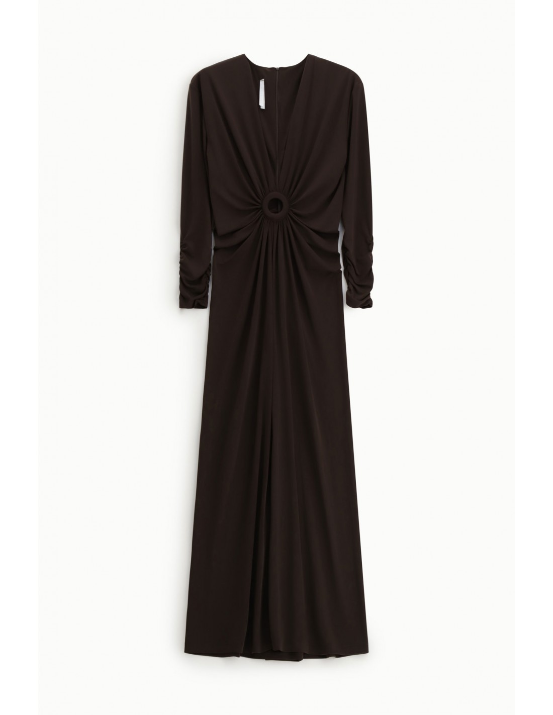 drapé poitrine resserré par un bijou ajouré qui laisse entrevoir la peau