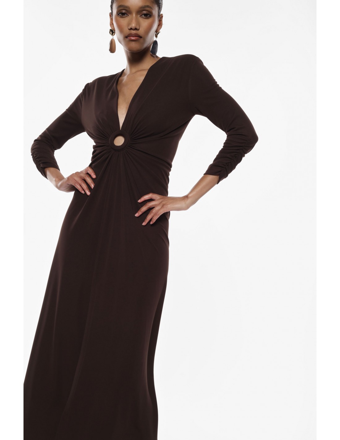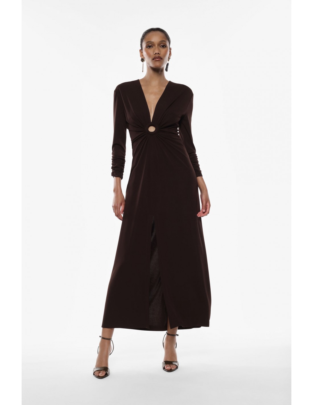 Les clientes adorent son tombé fluide et son confort stretch, tout en saluant le bijou poitrine qui apporte une touche de raffinement unique. Une robe qui allie audace et élégance italienne.