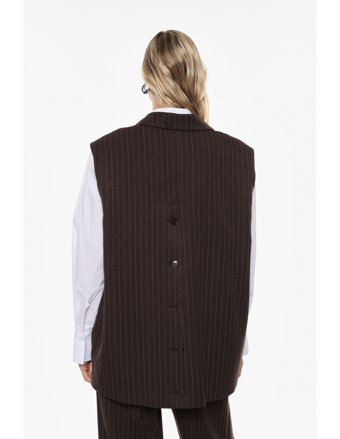 Imperial Femme – Blazer long sans manches chocolat rayé