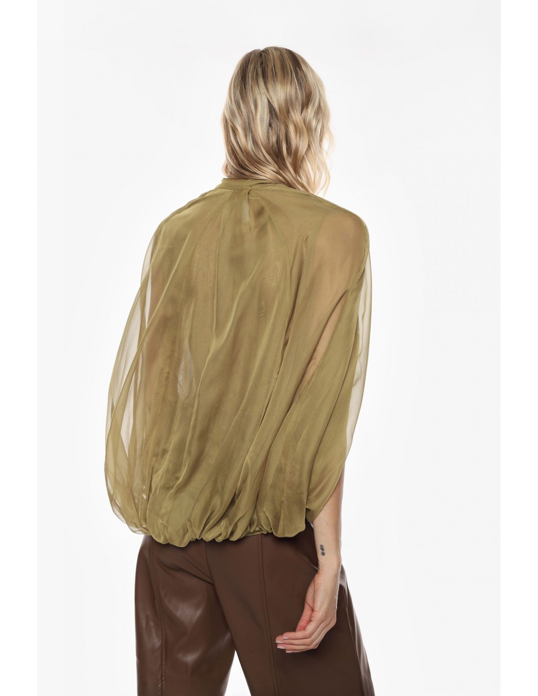 Élégante et aérienne, cette blouse fluide sans manches signée Imperial séduit par son tombé léger et sa coupe ample. Réalisée dans un voile transparent à double épaisseur, elle crée un effet vaporeux raffiné, parfait pour un look chic de jour comme de soir. Son encolure décolletée se ferme par un nœud cravate, ajoutant une touche sophistiquée et féminine, tandis que l’ourlet élastiqué assure un effet blousant moderne et flatteur.