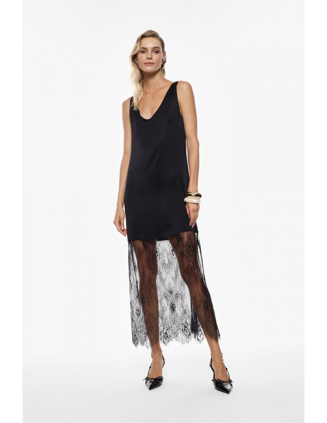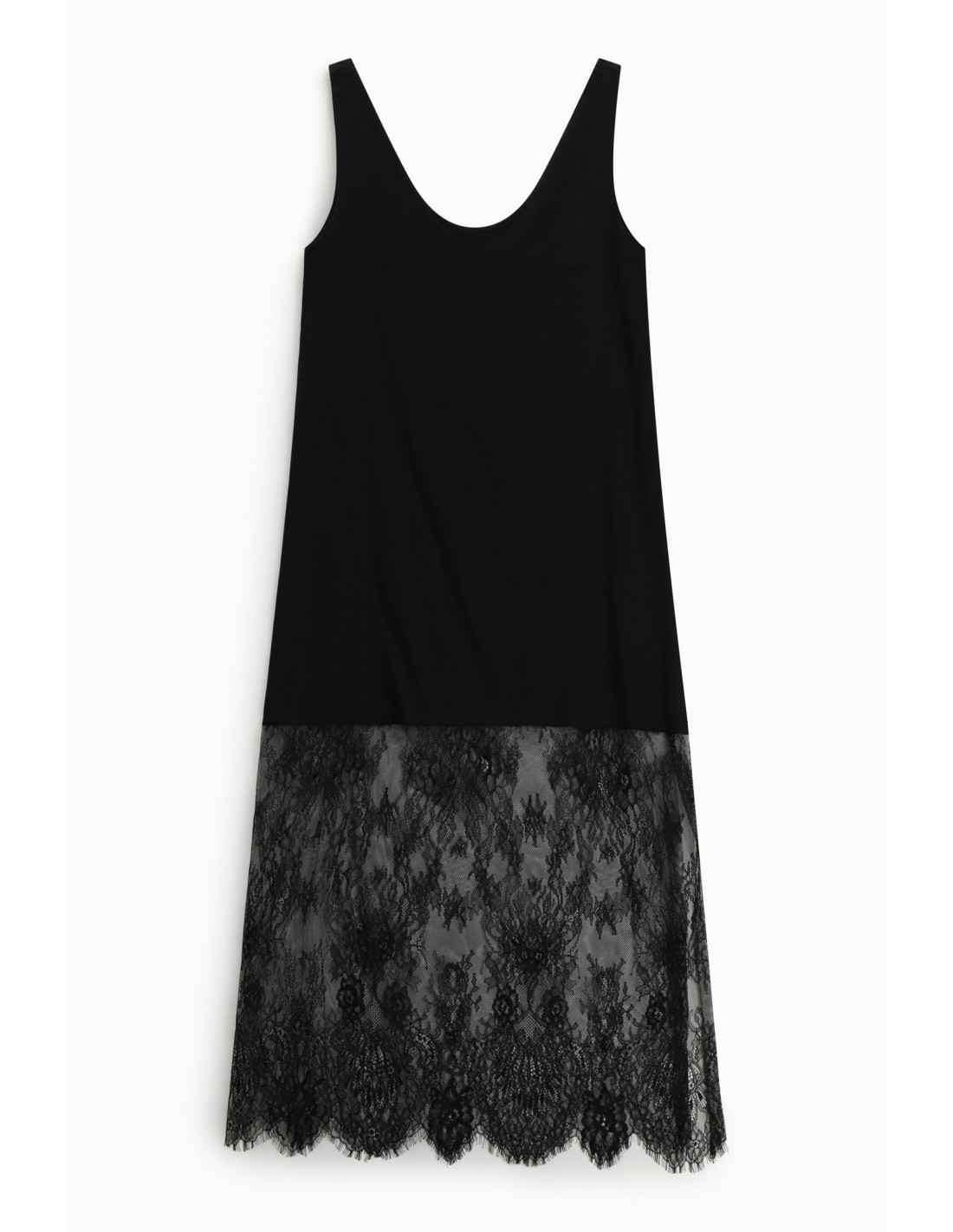 Jupon intégré en dentelle noire, longueur mi-mollet