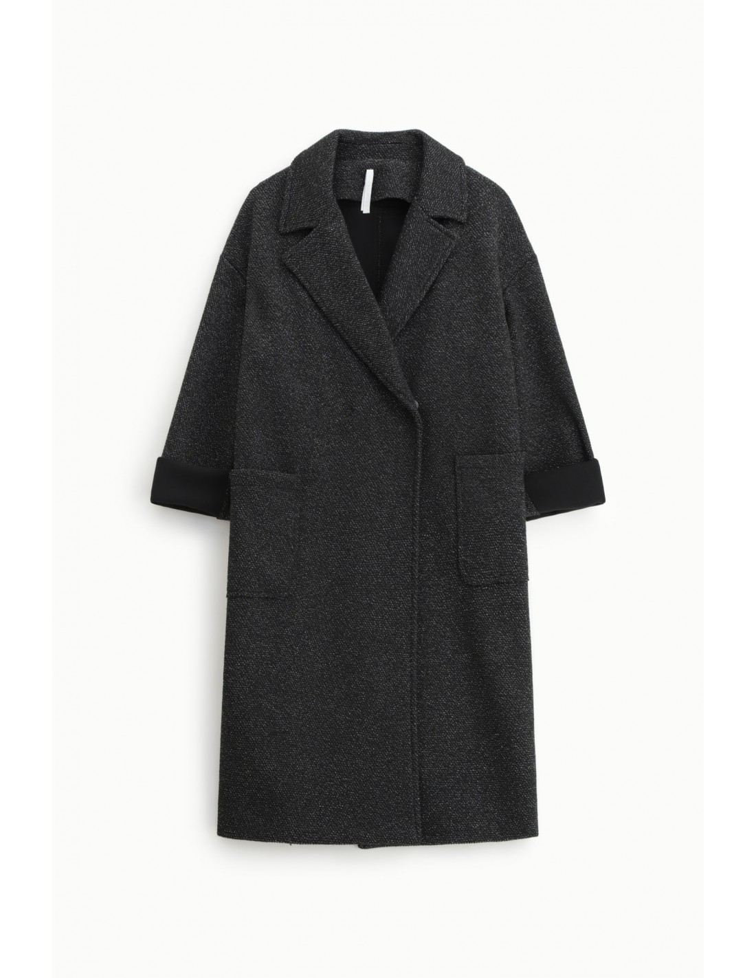 Imperial Femme – Manteau mi-long oversize en jersey chiné noir et argent