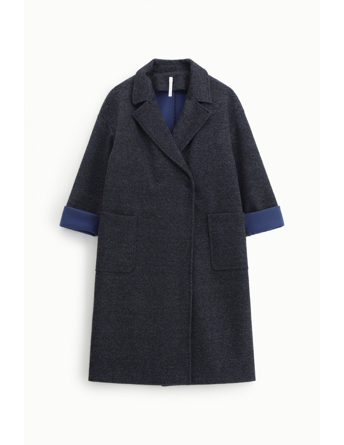Imperial Femme – Manteau mi-long oversize en jersey chiné bleu, noir et argent