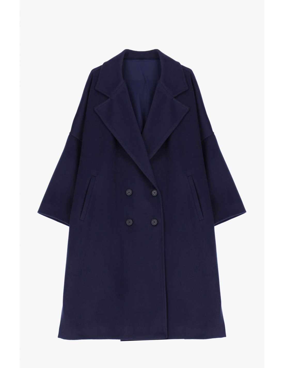 Affichez une allure affirmée avec ce manteau mi-long oversize pour femme signé Imperial. Confectionné dans un drap sergé texturé au toucher laineux, il se distingue par sa coupe très ample, sa carrure basse et son col à revers larges qui soulignent son esprit tailoring.