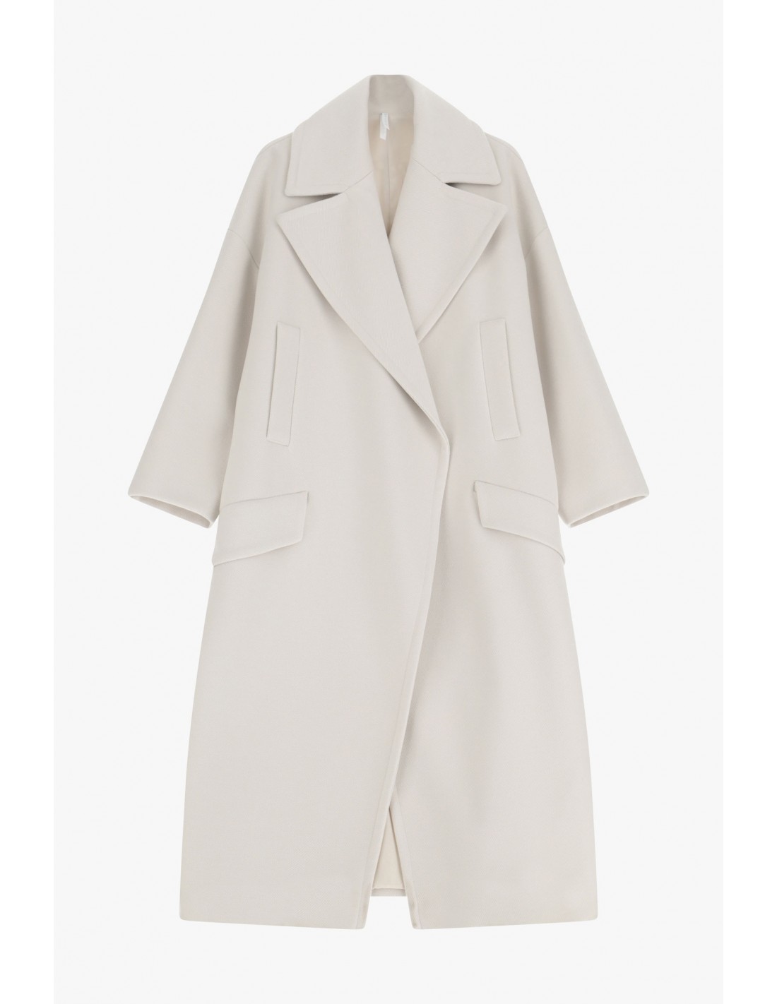 Imperial Femme, maxi manteau, ecru, forme oversize a revers larges