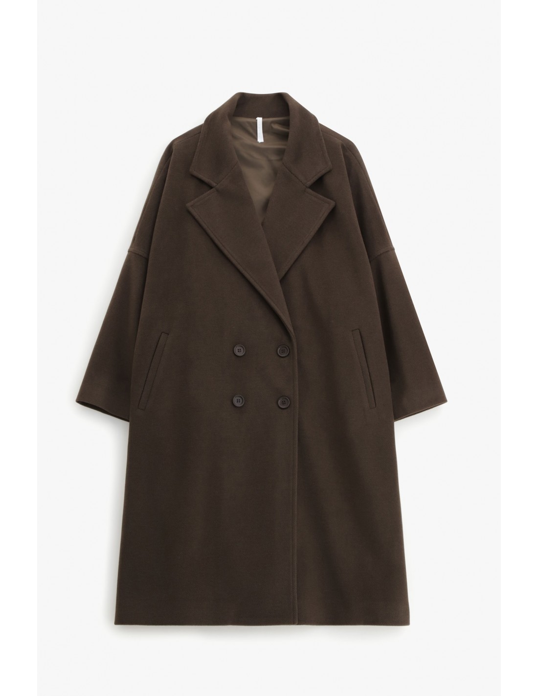 Affichez une allure affirmée avec ce manteau mi-long oversize pour femme signé Imperial. Confectionné dans un drap sergé texturé au toucher laineux, il se distingue par sa coupe très ample, sa carrure basse et son col à revers larges qui soulignent son esprit tailoring.