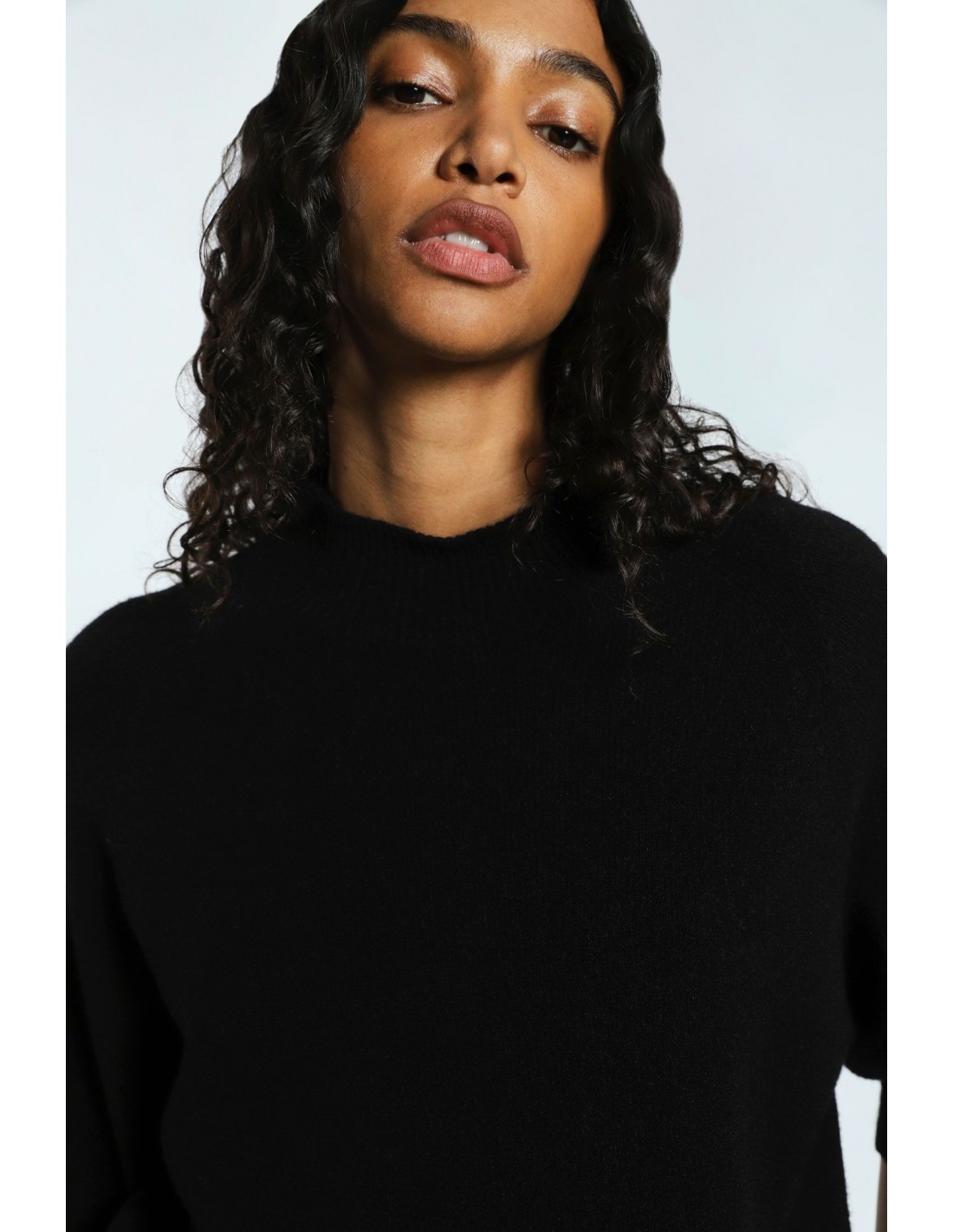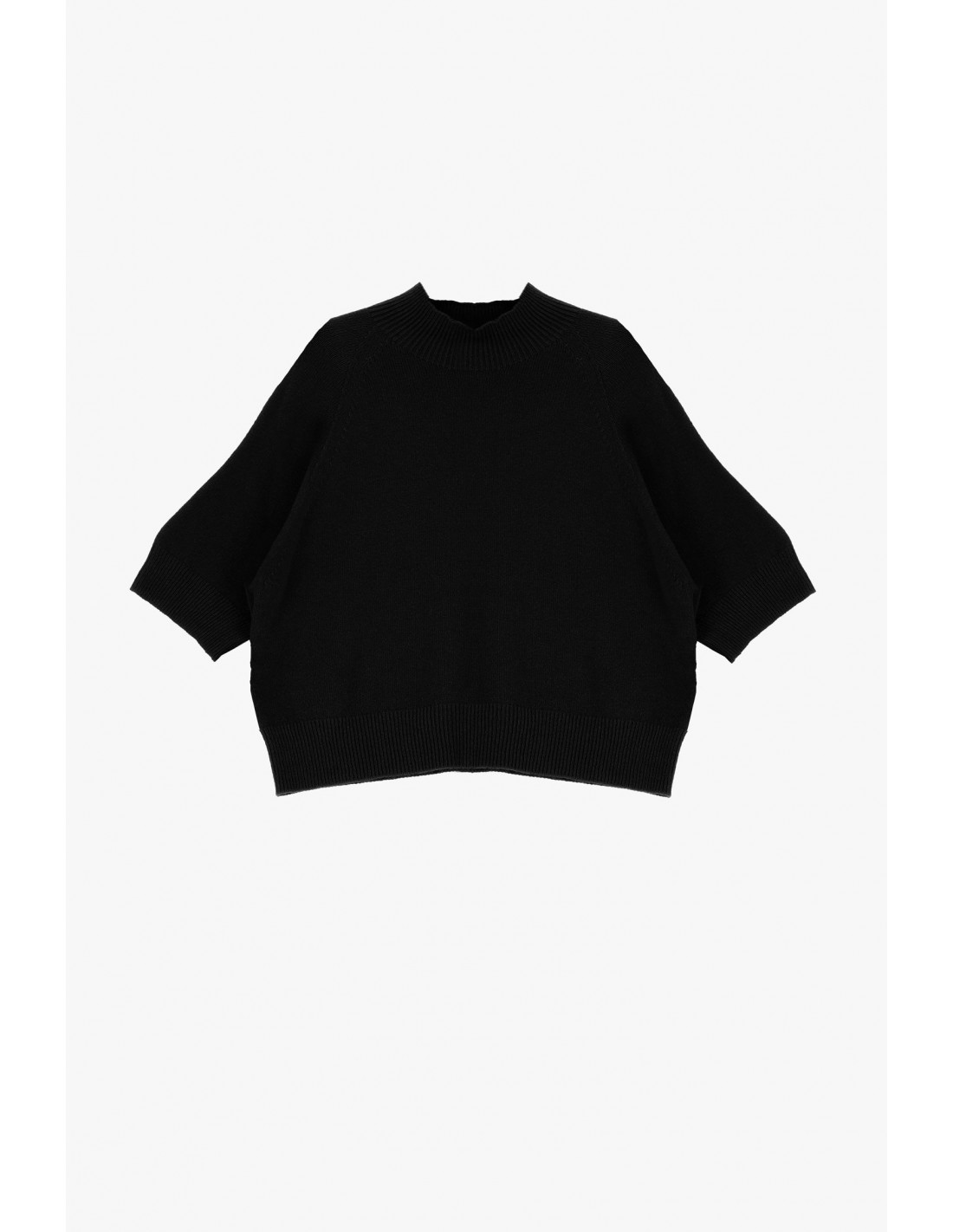 Maille douce au point mousse, coupe droite et courte, idéale pour sublimer une silhouette moderne. Son col rond légèrement montant et ses manches raglan apportent une touche contemporaine et décontractée. Parfaite pour accompagner un pantalon taille haute ou une jupe fluide, cette maille incarne l’élégance italienne dans sa version la plus simple et raffinée.
