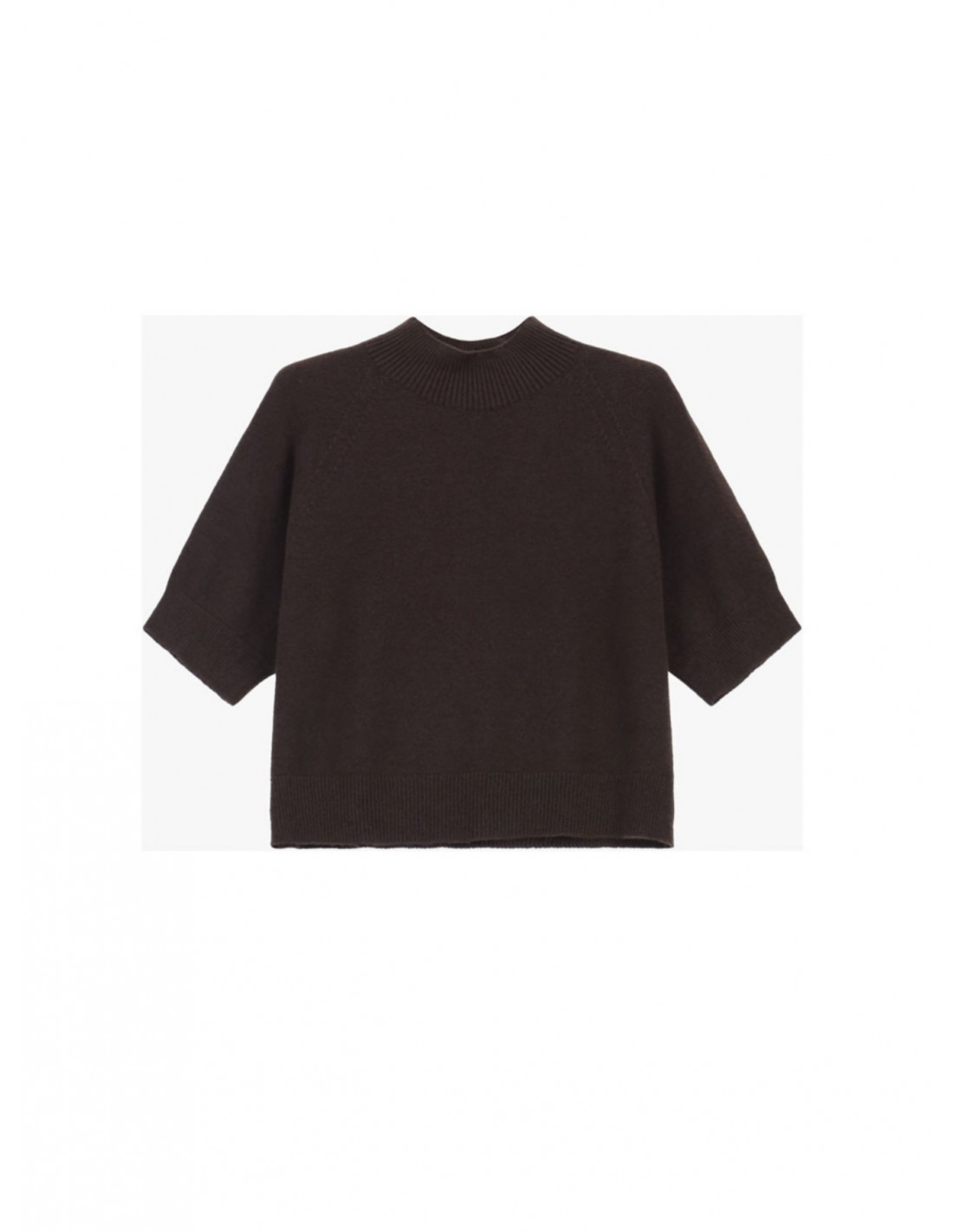 Imperial femme pull cropp a manches courtes en maille coloris Chocolat
