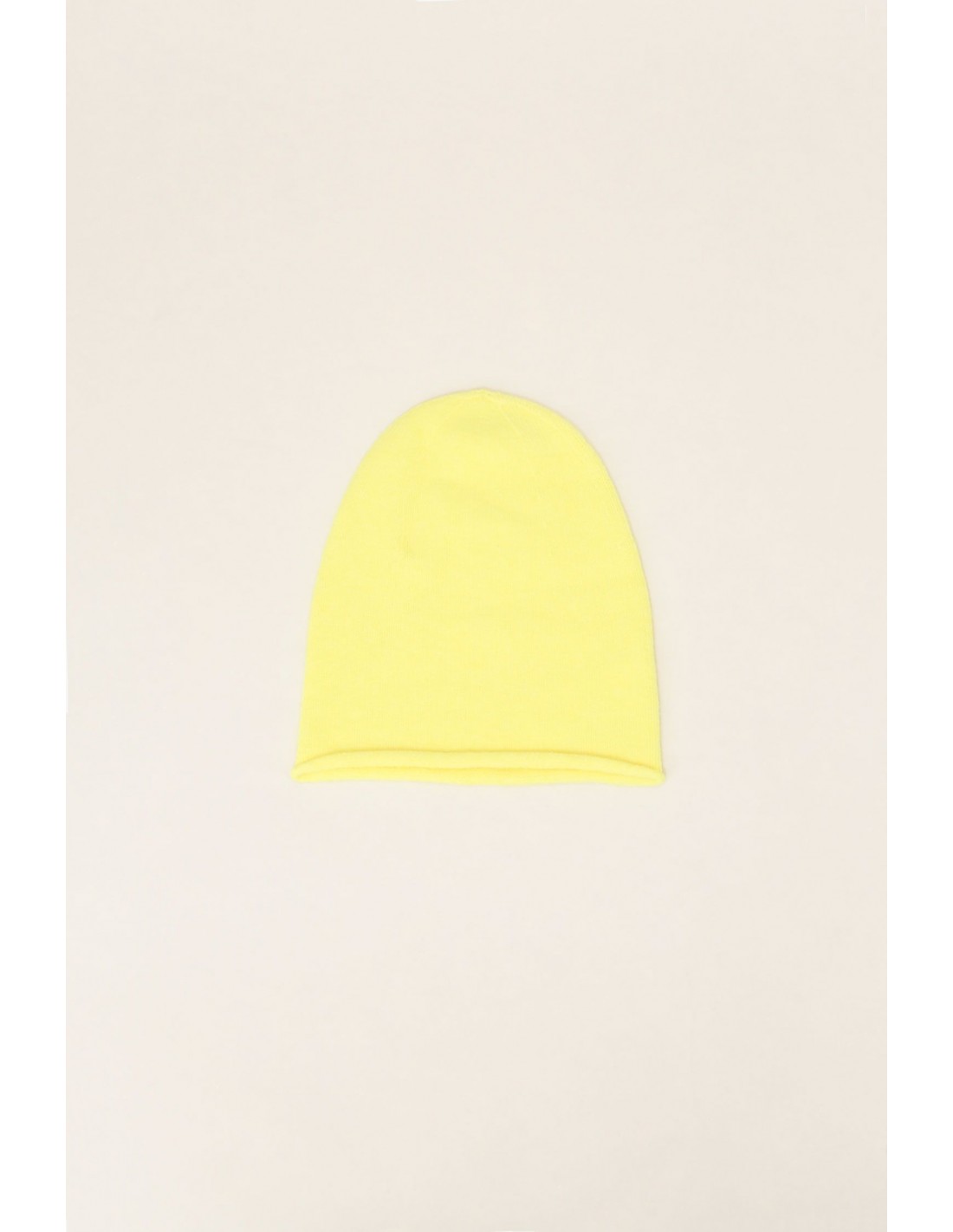 Le bonnet se distingue par sa maille point mousse douce au toucher, qui offre une sensation de chaleur et de douceur. Ses finitions roulottées ajoutent une touche d'élégance discrète, témoignant de l'attention portée aux détails.