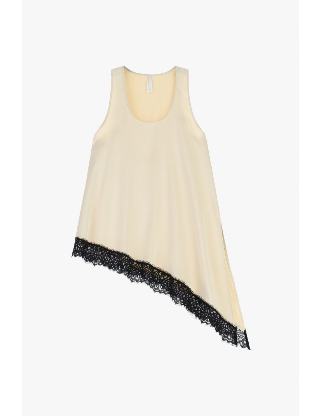 Icône de féminité contemporaine, ce débardeur Imperial revisite le top en satin avec une coupe trapèze asymétrique et des lignes épurées qui subliment la silhouette. Ses larges brides et son col rond dévoilent élégamment le décolleté, tandis que les finitions en dentelle noire contrastée ajoutent une touche de raffinement. Fluide, léger et lumineux, ce top est la pièce idéale pour composer des looks sophistiqués de jour comme de soirée.