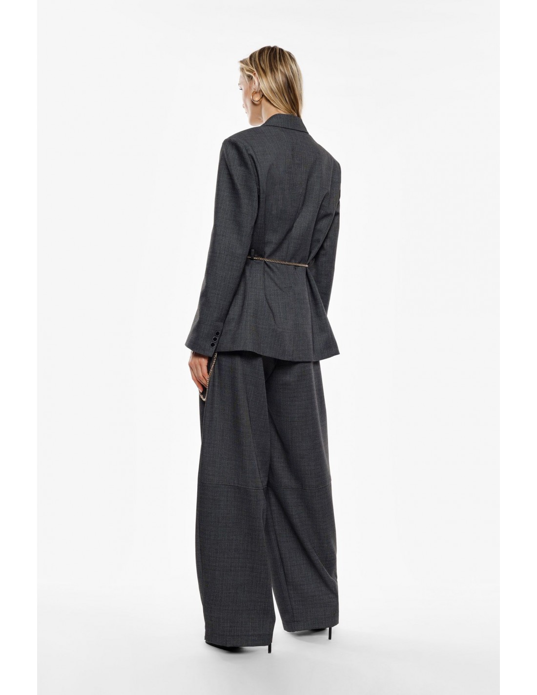 Une pièce puissante qui conjugue confort, allure couture et détail joaillerie. Le tombé fluide élance la silhouette, tandis que la ceinture dorée apporte un effet “taille de guêpe” sophistiqué.