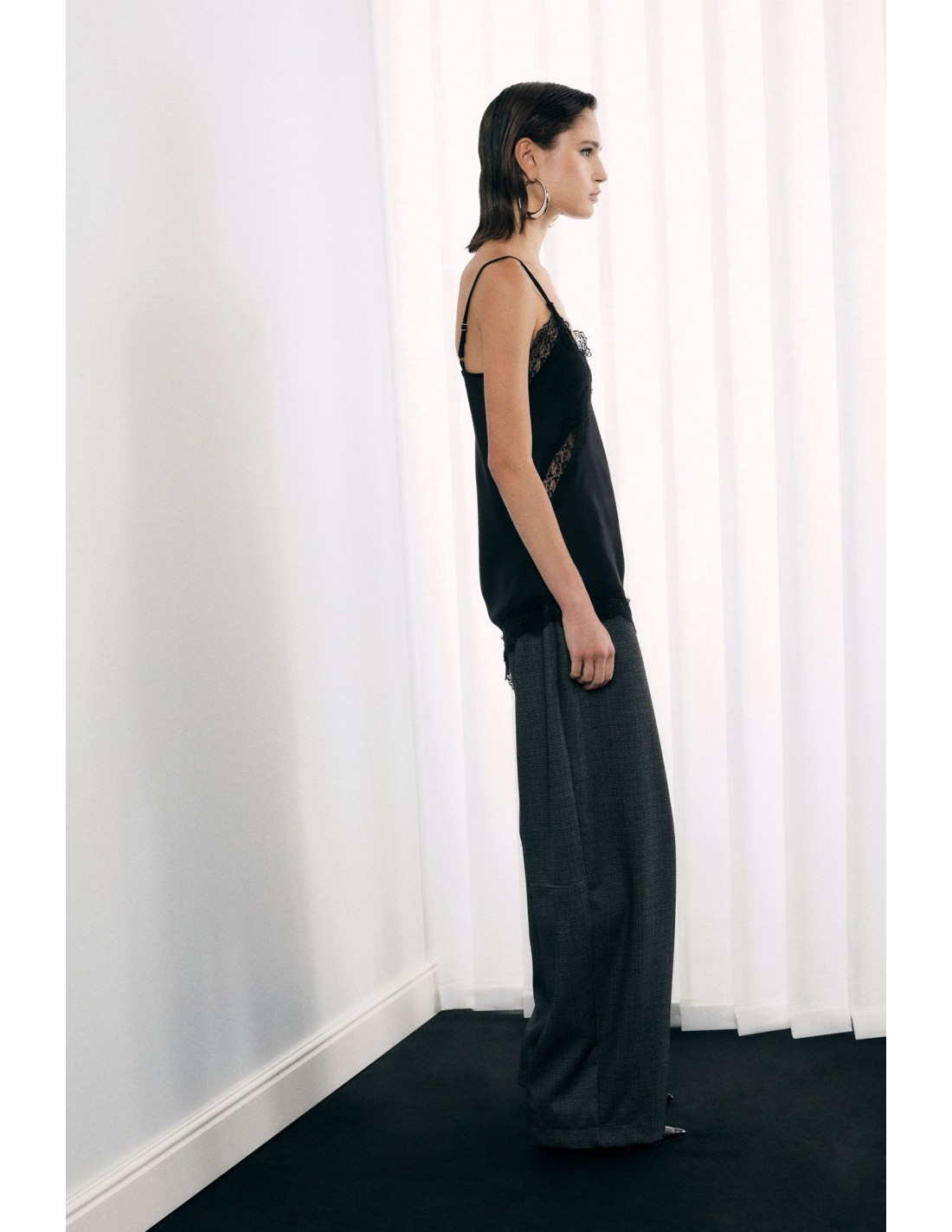 Imperial Femme Pantalon Palazzo noir chiné chaine decorative
