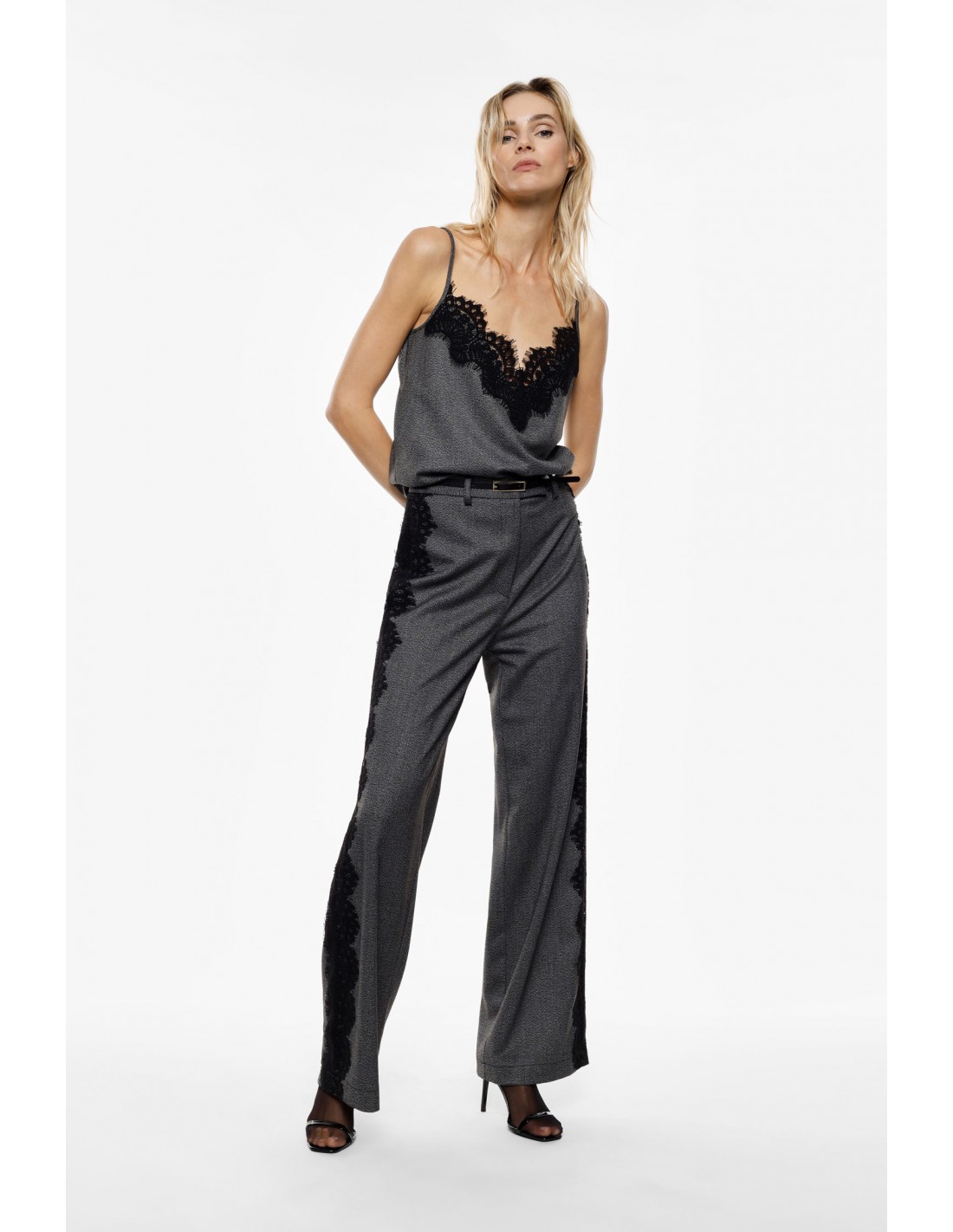 Imperial Femme pantalon gris avec detail en dentelle noire