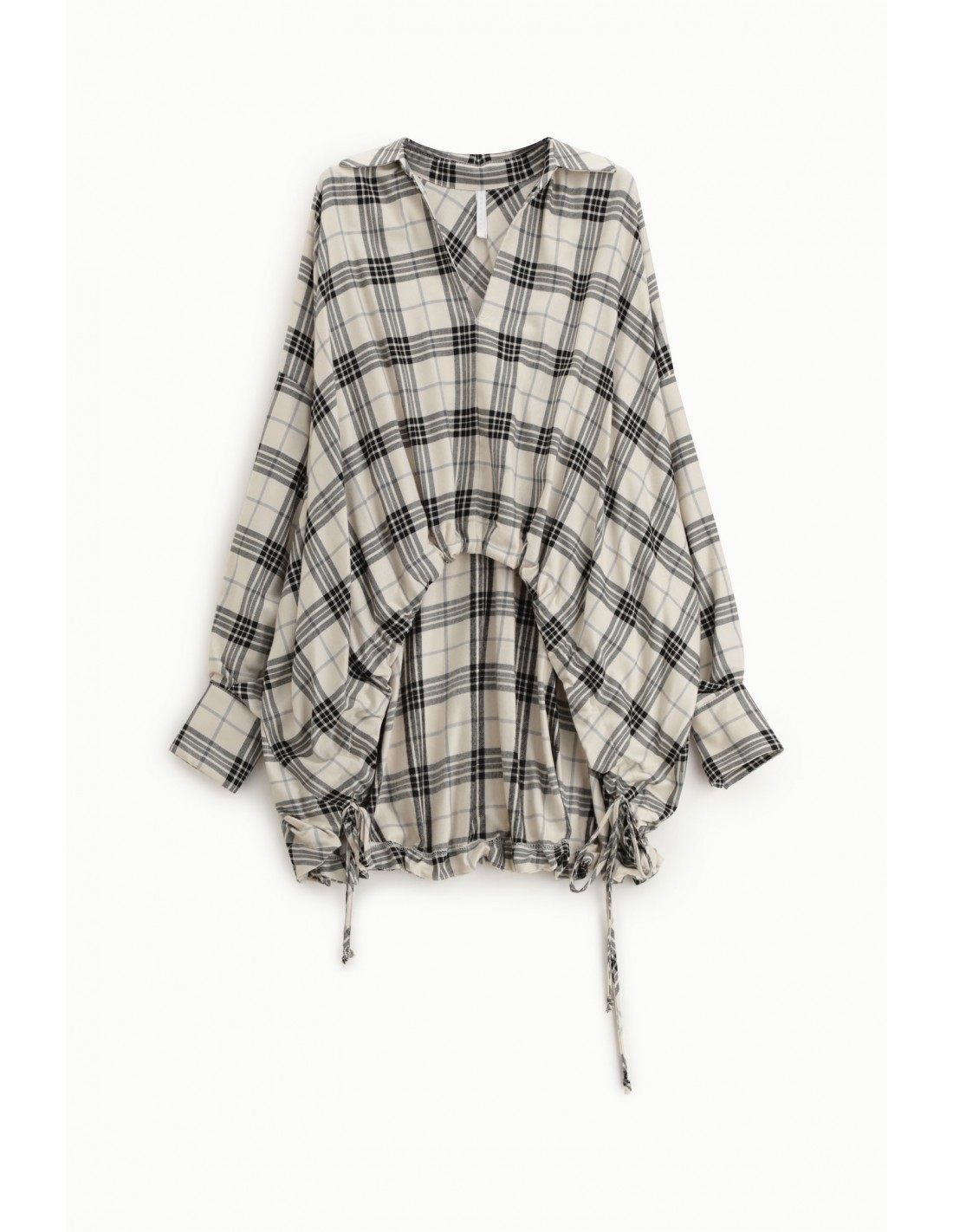 Chemisier oversize à carreaux – Liens de serrage et dos asymétrique