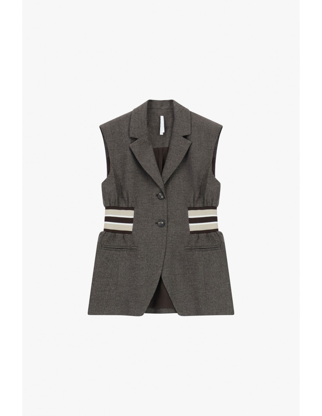Un gilet coordonné est disponible pour créer un tailleur complet et structuré.