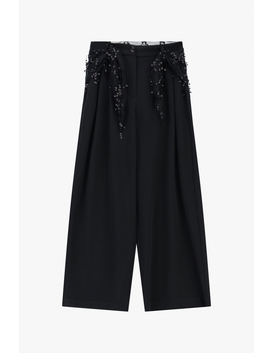 Imperial Femme – Pantalon large à ceinture obi en tulle et sequins