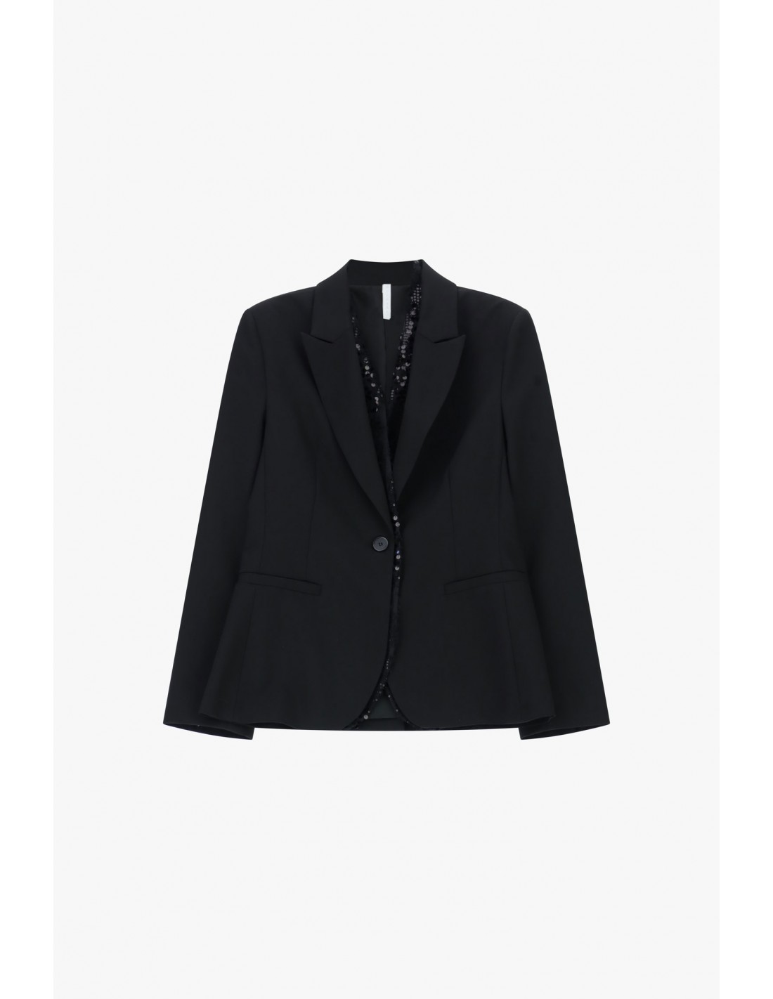 Imperial Femme – Blazer droit en drap sergé et tulle à sequins