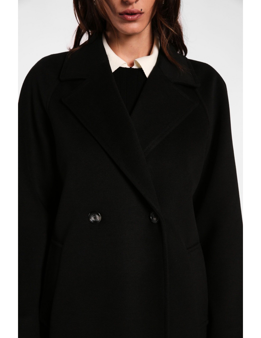 • Coupe : manteau court légèrement oversize