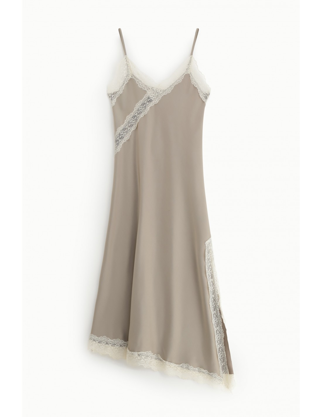 Robe mi-longue asymétrique en crêpe satin à dentelle – Imperial