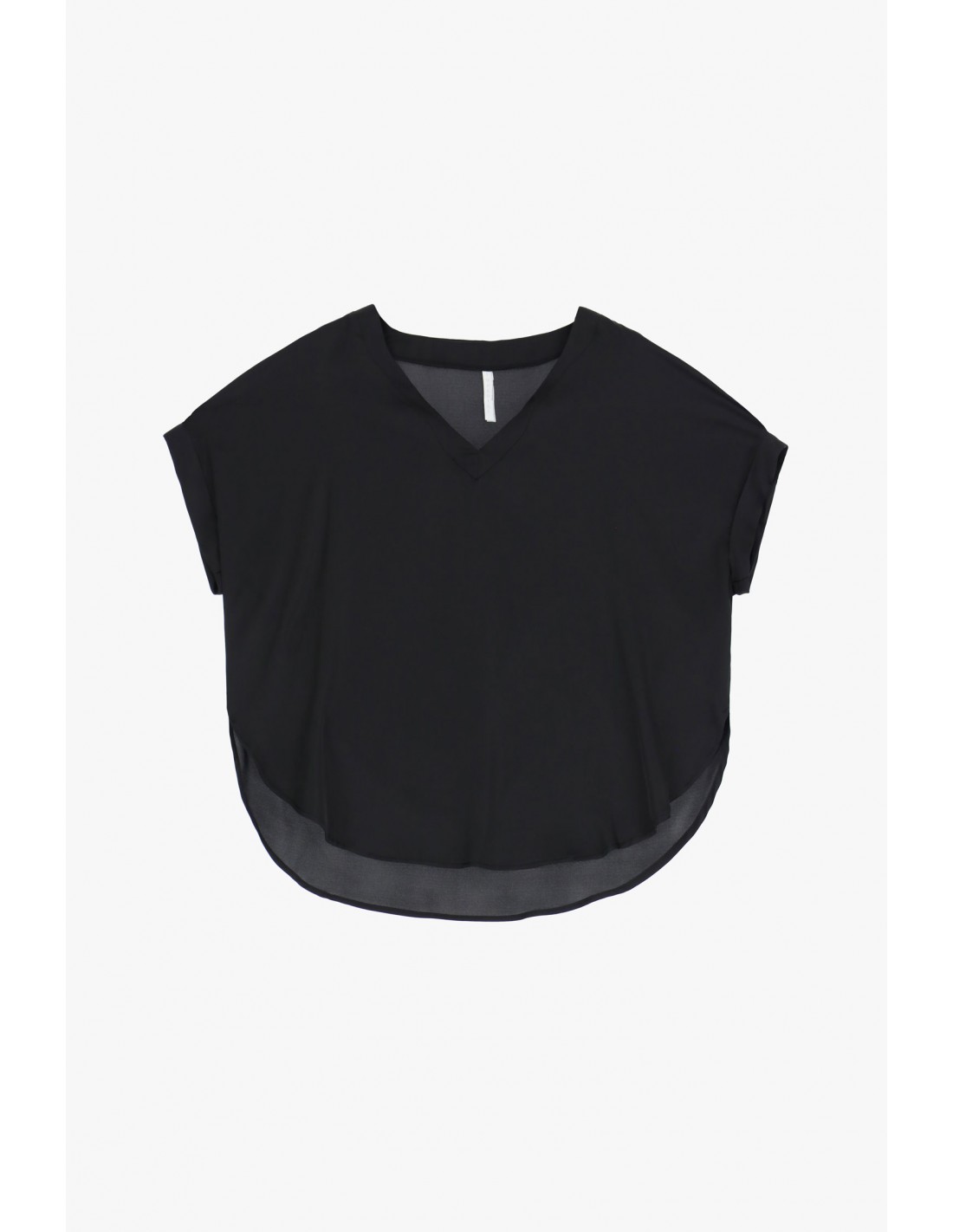 T-shirt oversized fluide en crêpe satin, au tombé élégant et au décolleté féminin, idéal pour composer des looks chic, du quotidien stylé aux silhouettes plus habillées.