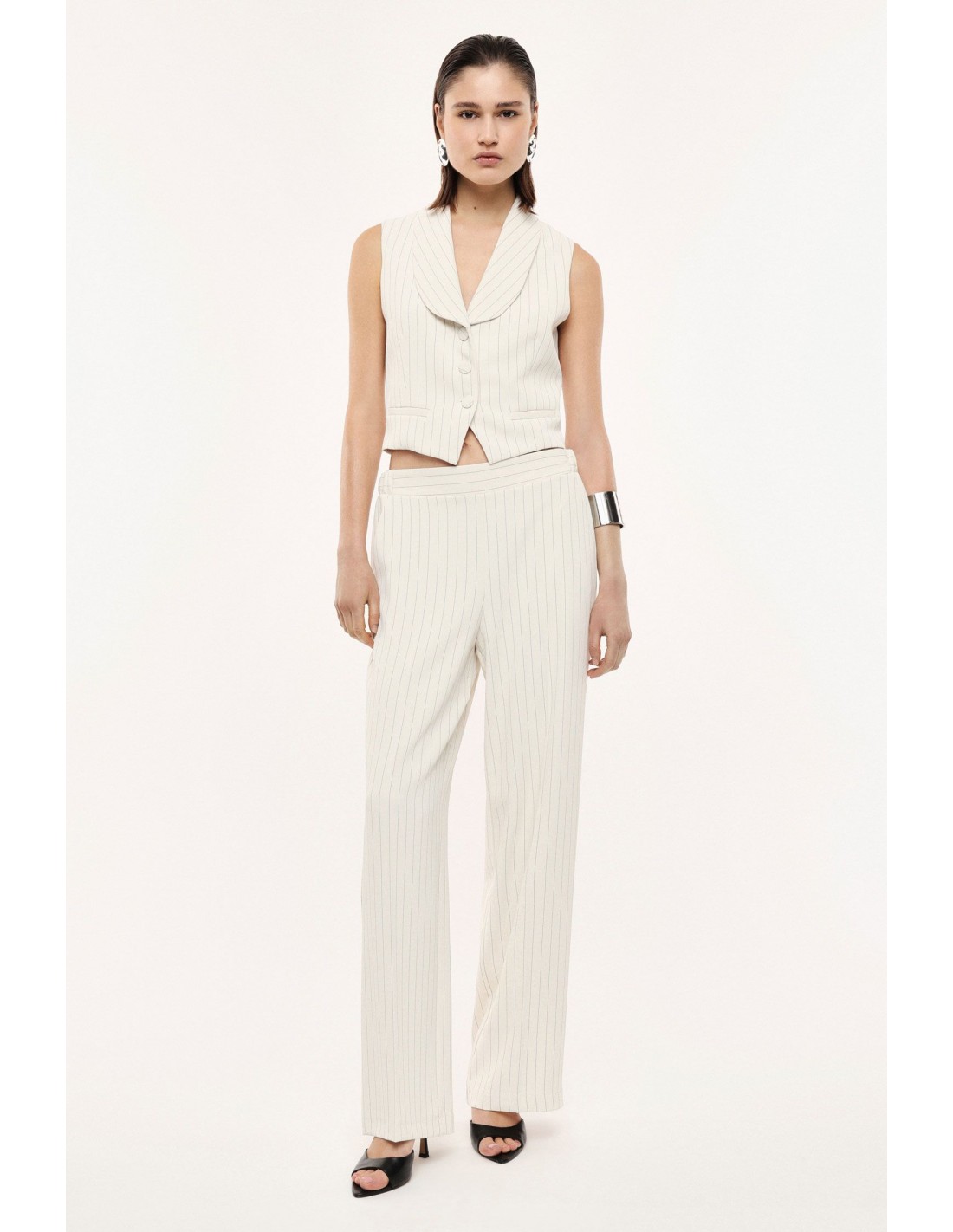 Ce pantalon palazzo Imperial Femme à motif rayé est pensé comme une pièce structurante du vestiaire féminin, capable d’accompagner aussi bien une tenue de bureau chic qu’une silhouette plus habillée pour un événement.