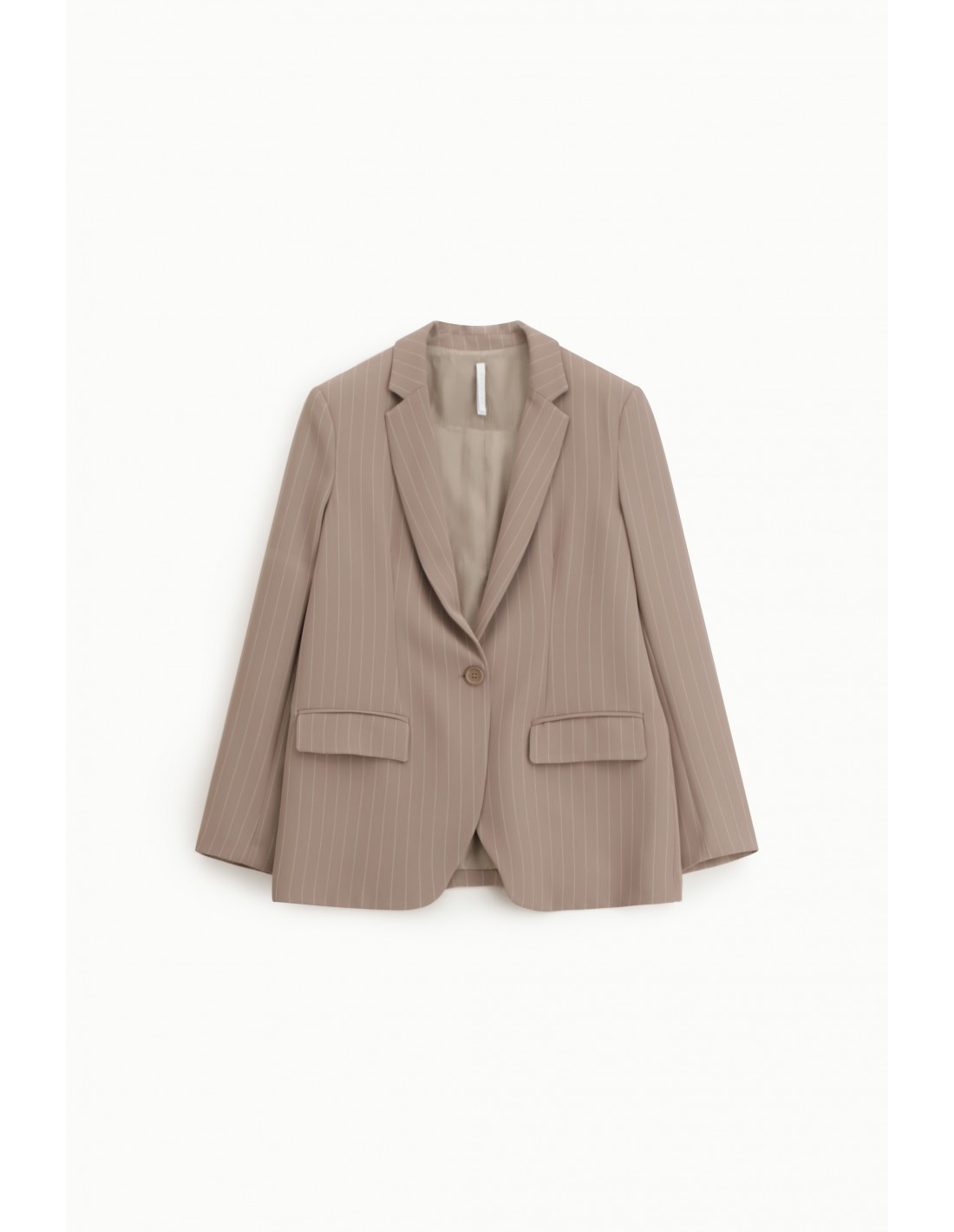 Blazer de tailleur fluide rayé, idéal pour structurer une silhouette élégante au bureau comme en tenue habillée.