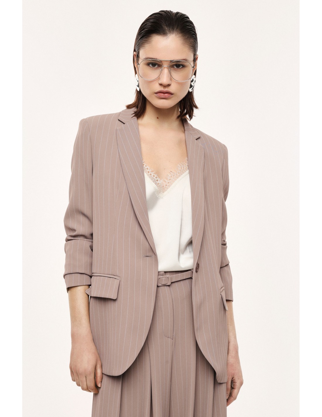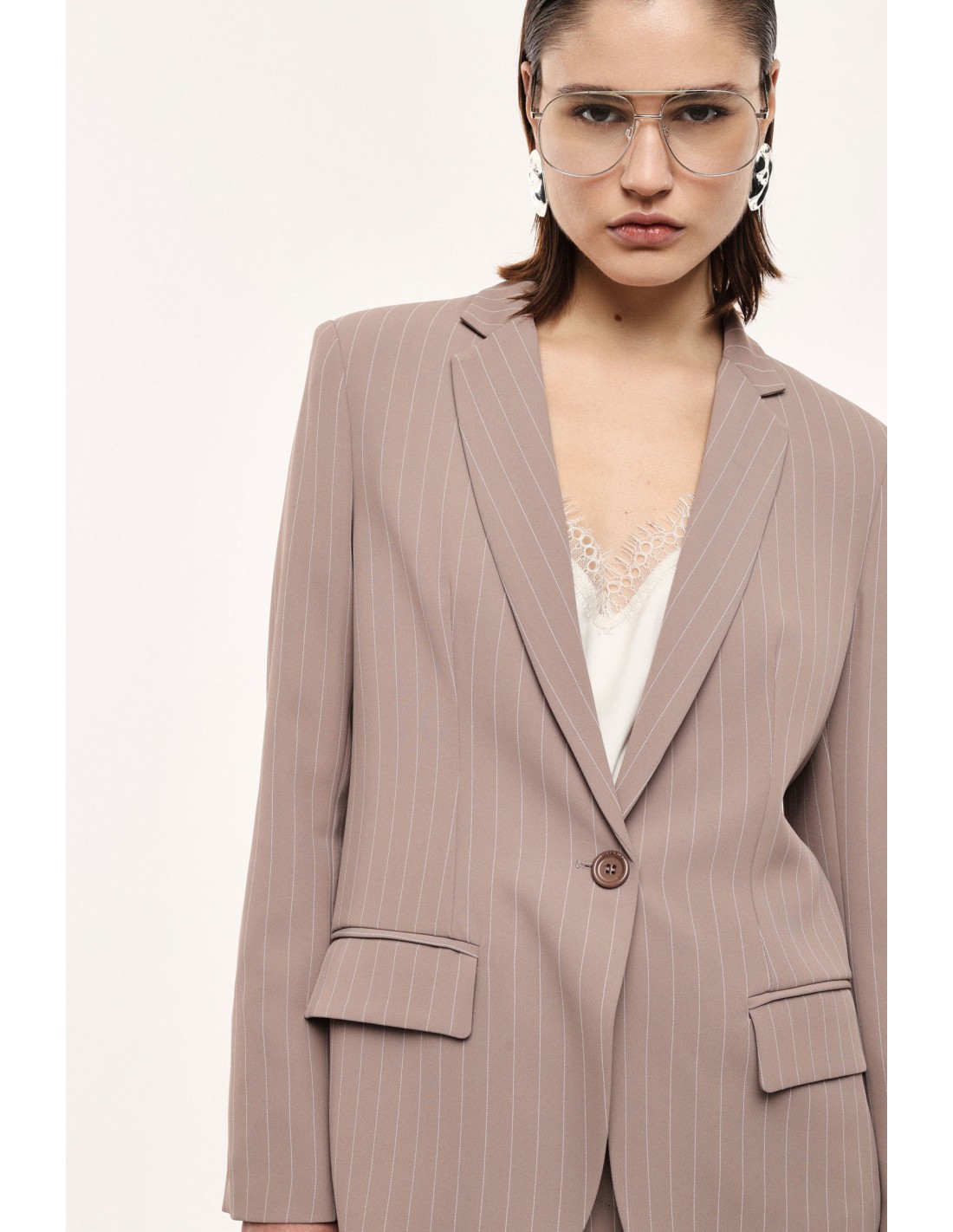 Blazer de tailleur en crêpe fluide rayé – Imperial Femme