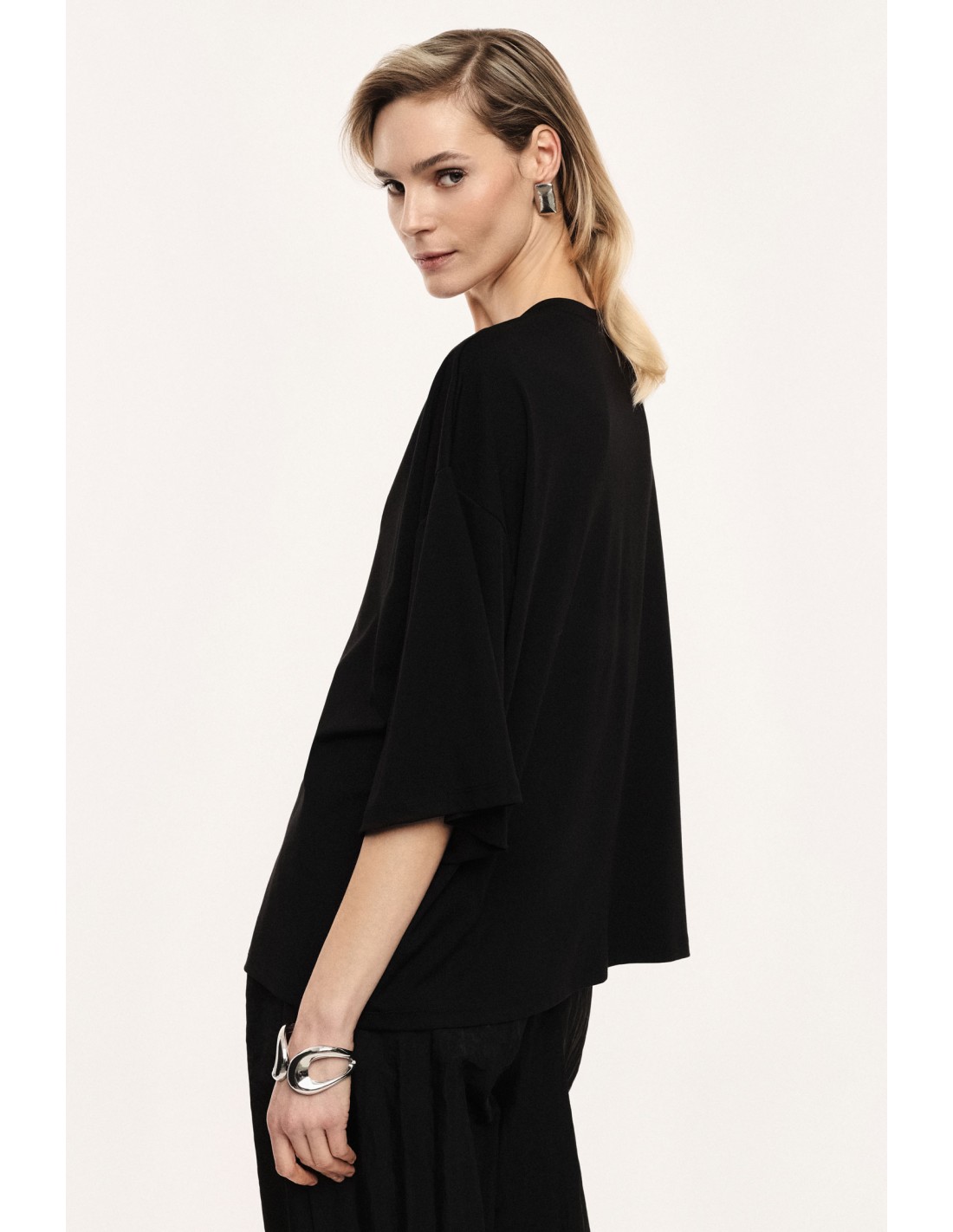 Top fluide col V, manches chauve-souris 3/4, jersey doux et extensible, plusieurs coloris unis, fabrication italienne, livraison express 24/48h, paiement en plusieurs fois, retours possibles.