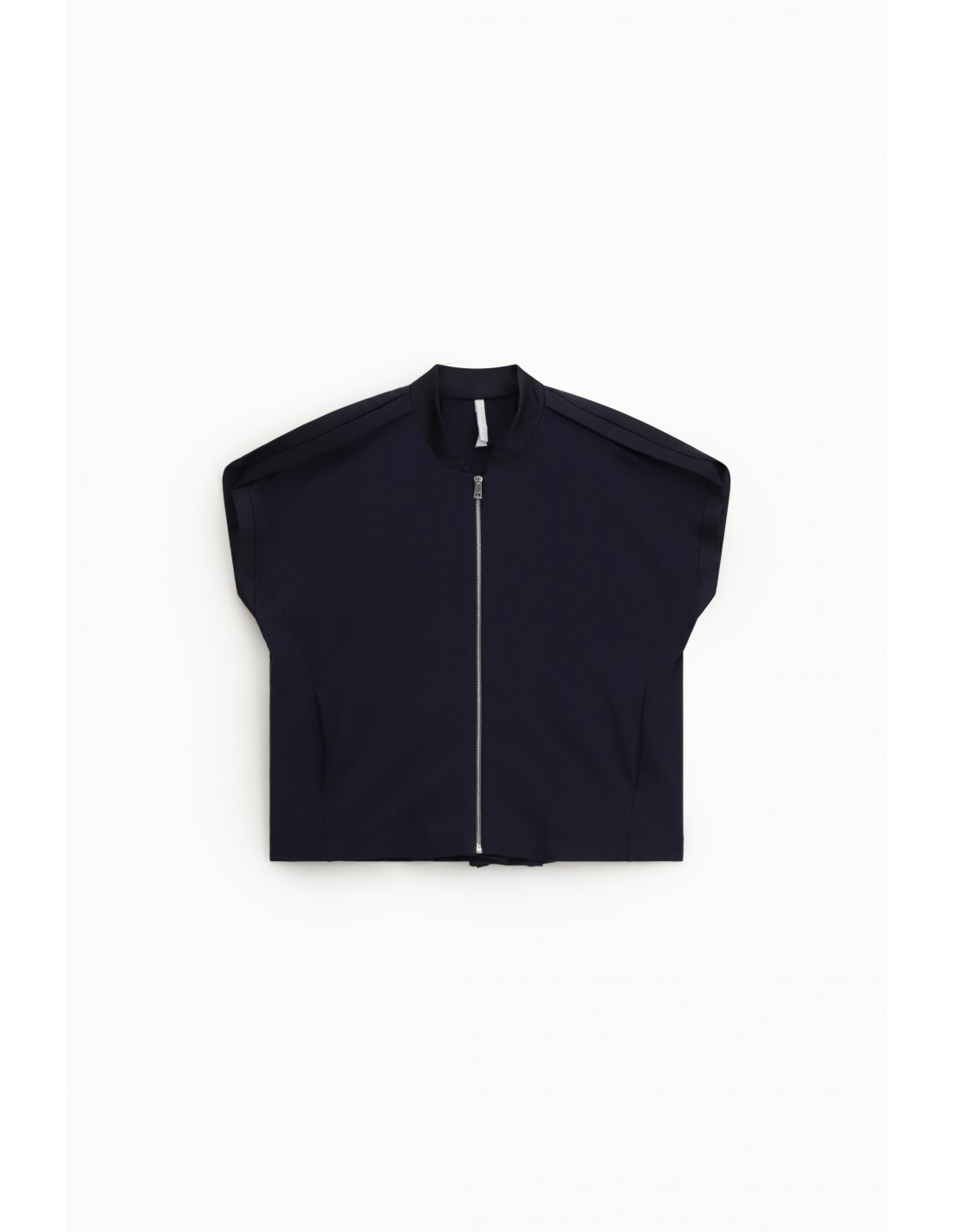Gilet zippé en point de Milan, coupe trapèze ample, finitions satin, coordonnable avec pièces assorties, fabrication italienne, livraison express 24/48h, paiement en plusieurs fois, retours possibles.