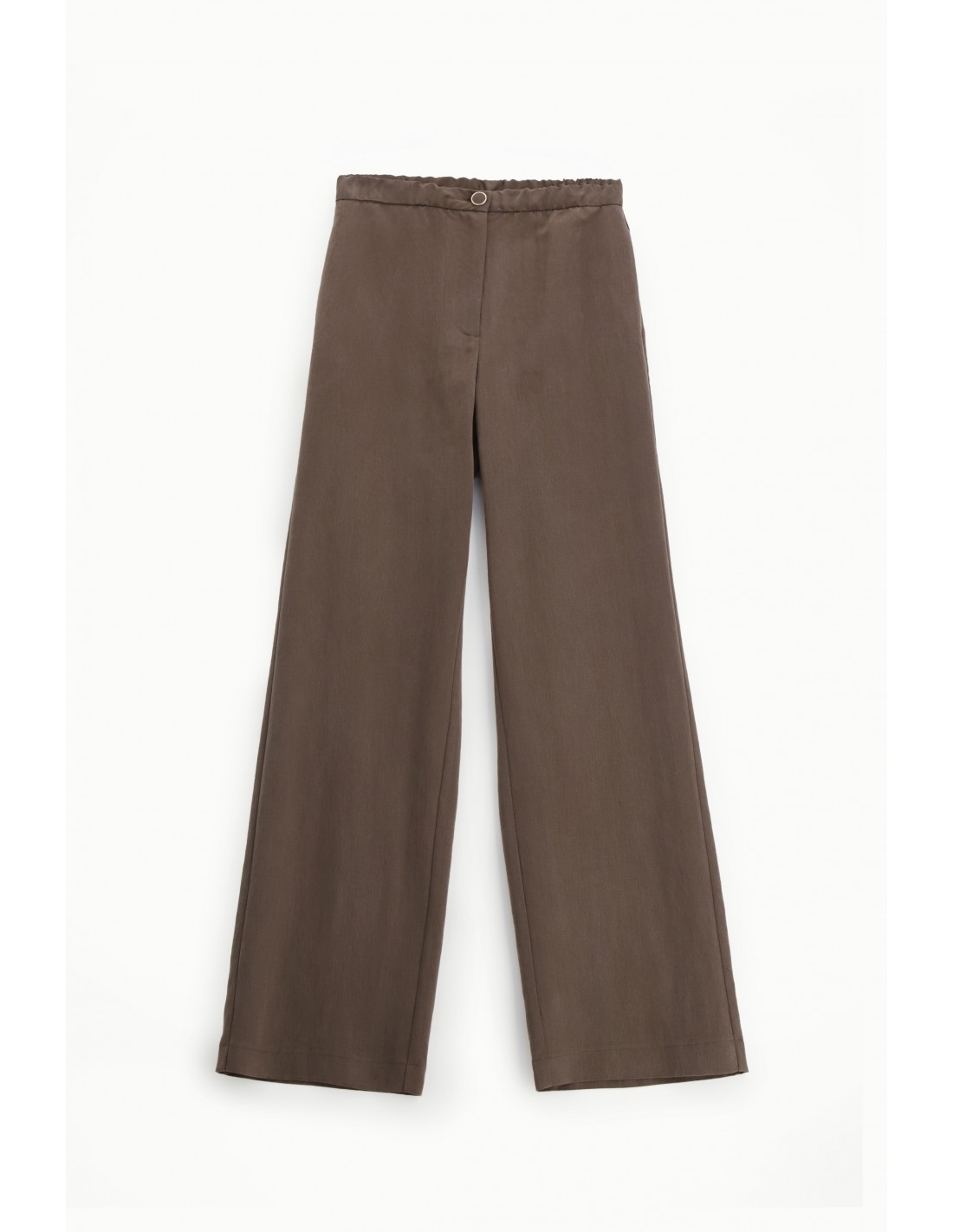 Confectionné dans un tissu « peau de pêche », au toucher doux et velouté, il se distingue par son élégance mate et sa grande qualité de tombé. Il s’inscrit naturellement dans un vestiaire coordonné grâce au pantalon assorti, permettant de composer un tailleur complet à la fois chic, moderne et polyvalent.