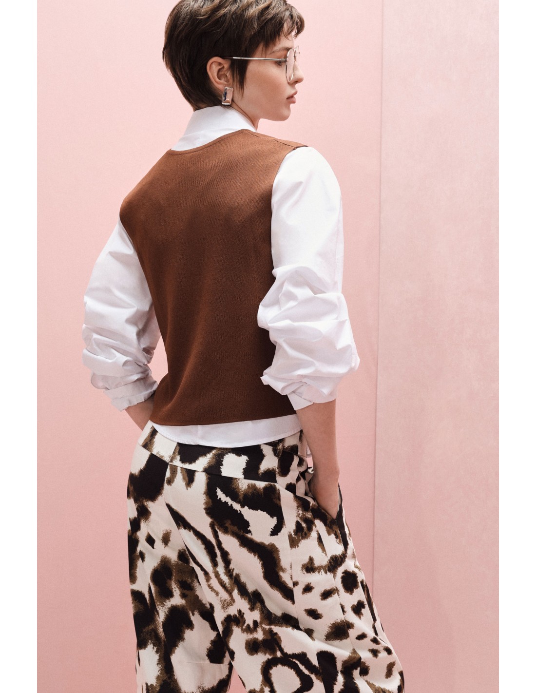 À associer avec un blazer Imperial pour jouer le contraste entre structure et maille, un pantalon taille haute pour équilibrer la coupe courte, ou une jupe fluide pour une silhouette plus féminine et moderne.