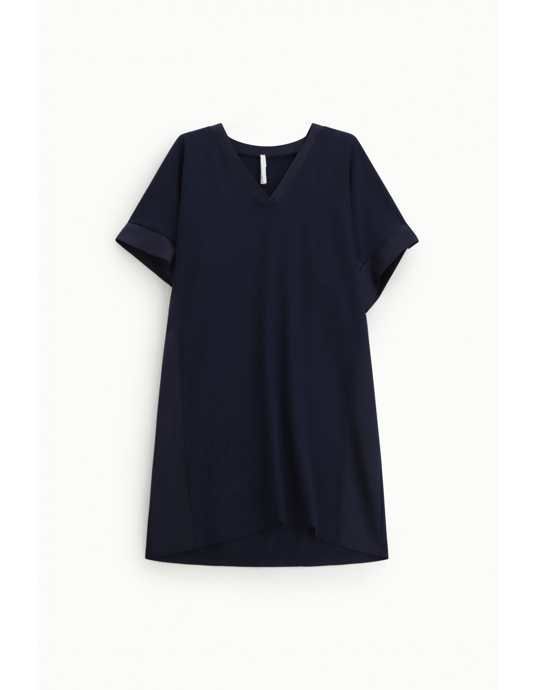 Robe courte à l’allure épurée et moderne, conçue pour offrir une silhouette fluide, lisible et immédiatement élégante. Sa forme trapèze crée un tombé naturel qui libère le mouvement tout en structurant la ligne. Le col V et les manches courtes équilibrent la coupe pour un rendu féminin et polyvalent.