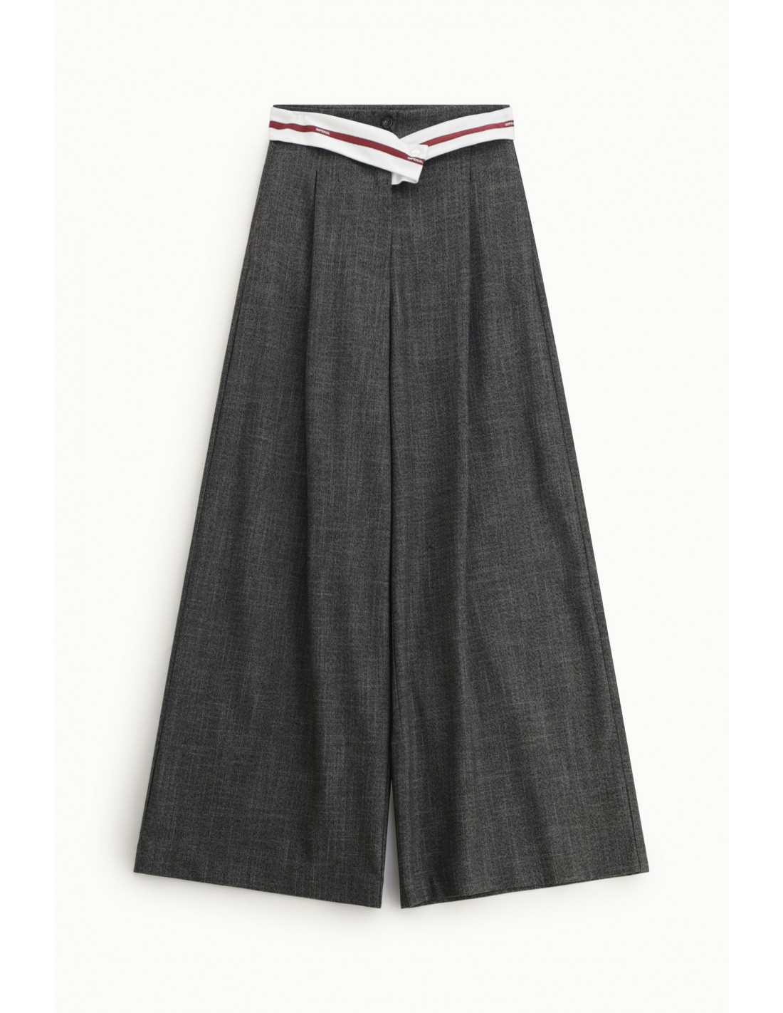 Pantalon palazzo taille haute signature de Imperial Fashion : jambe large, tombé très actuel et élégant, ceinture croisée inversée avec galon pour une taille visuellement structurée. Pièce forte de tailleur coordonné à porter avec le gilet et le blazer assortis ou en version décalée. Tissu chiné fluide, fabrication italienne. Livraison express 24/48h, paiement fractionné, conseils styling expert. Retours et échanges possibles — retour à la charge du client.
