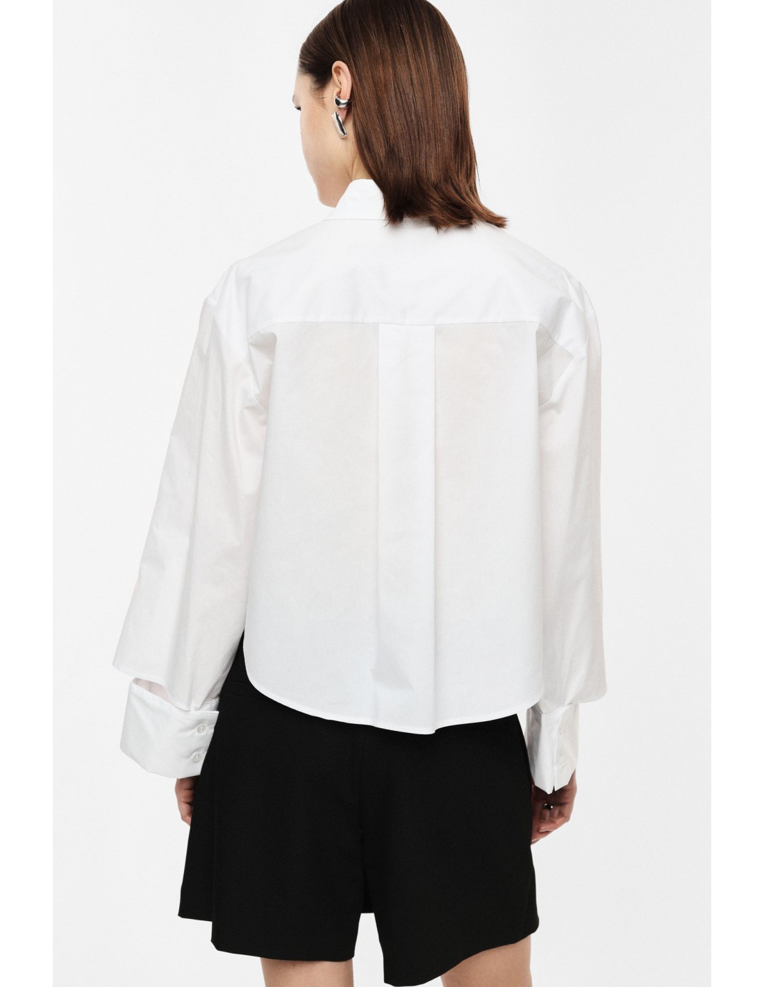 Chemisier cropped à l’allure mode et structurée, pensé pour moderniser instantanément la silhouette. Sa longueur raccourcie équilibre parfaitement les pantalons et jupes taille haute et permet de travailler les proportions sans surcharge de volume.
