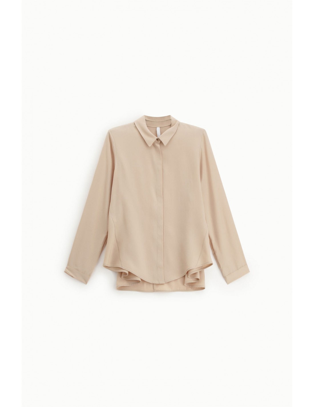 Cette chemise a été conçue comme un basique premium, capable de structurer une silhouette sans la contraindre. Sa coupe droite à forme trapèze marquée apporte une ligne nette et féminine, tout en conservant une grande liberté de mouvement.