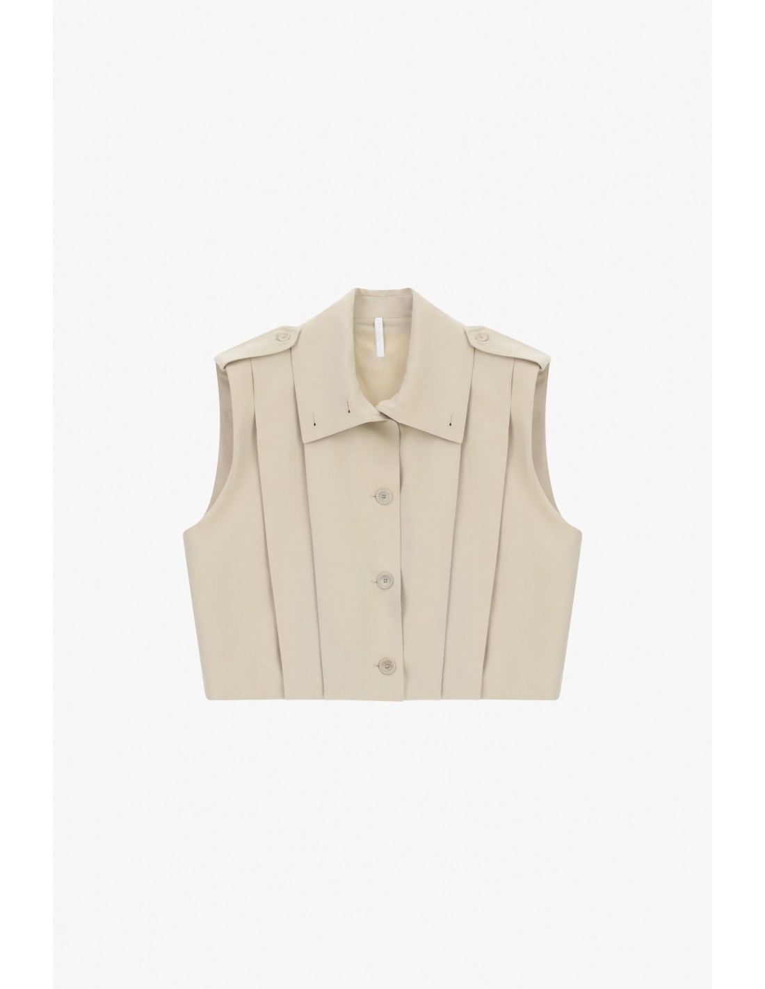 Veste sans manches Imperial à l’allure couture, pensée pour structurer une silhouette contemporaine. Coupe oversized affirmée, col montant graphique, fermeture boutonnée et épaulettes boutonnées pour une ligne forte. Les soufflets placés à l’avant et au dos apportent du volume et du mouvement, tandis que la draperie sergée assure une tenue élégante. Entièrement doublée. Une pièce signature à associer avec toutes les créations coupées dans la même draperie. Fabrication italienne.