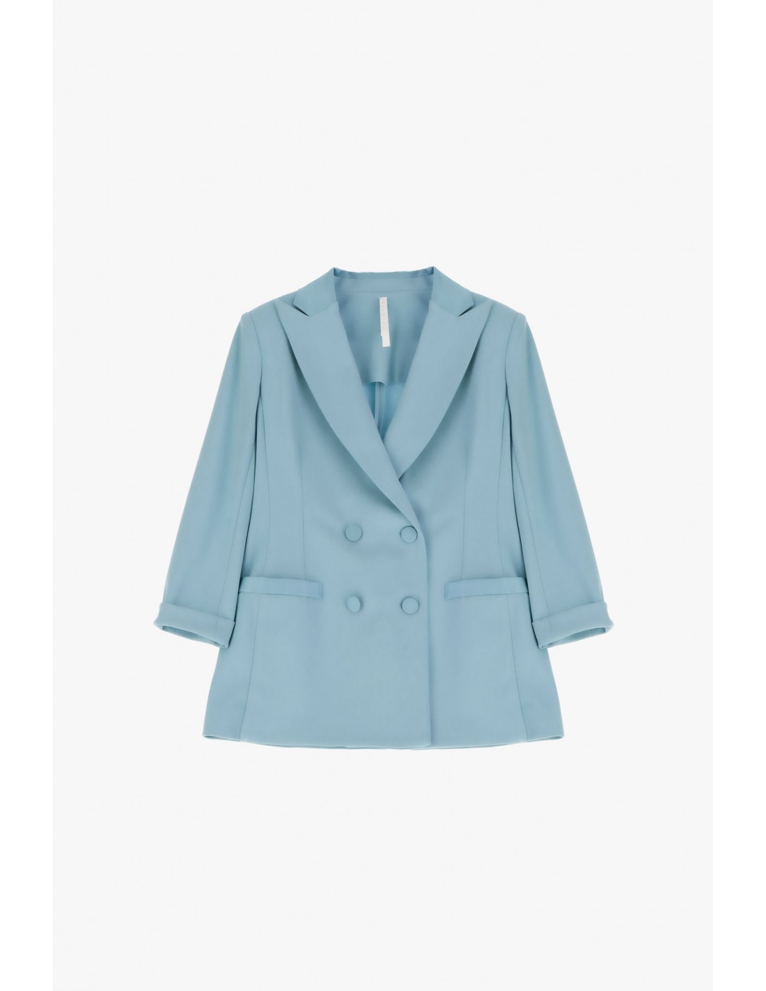 Les manches 3/4 à revers apportent une touche moderne et féminine, idéale pour les occasions habillées. Les épaulettes cousues structurent le porté sans rigidité, tandis que les fausses poches à passepoil satin assurent une finition nette et raffinée. Confectionné dans une tricotine stretch très souple et non doublée, ce blazer offre un confort remarquable, un tombé fluide et une grande liberté de mouvement, même porté toute une journée ou une soirée.
