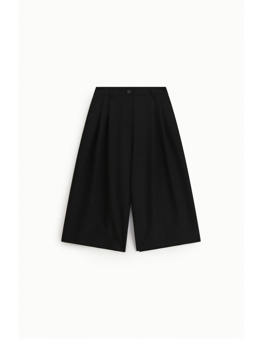 Ce bermuda de tailleur développe une silhouette ample et construite, inspirée des codes du tailoring tout en apportant une lecture résolument actuelle. La jambe large et la longueur genou offrent un équilibre élégant entre structure et fluidité, tandis que les plis frontaux cousus apportent du relief et soulignent la ligne avec précision.
