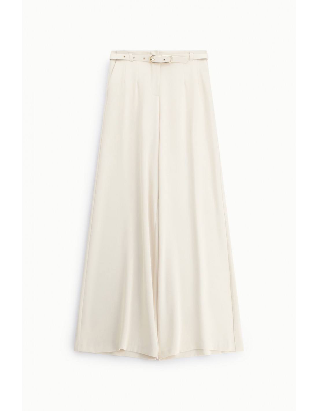 Ce pantalon développe une silhouette palazzo fluide et élégante, construite autour d’une taille haute ceinturée qui structure naturellement la ligne. La ceinture fournie, dotée d’une boucle métallique, permet d’ajuster le porté et de marquer la taille avec précision, tout en apportant une touche contemporaine et urbaine.