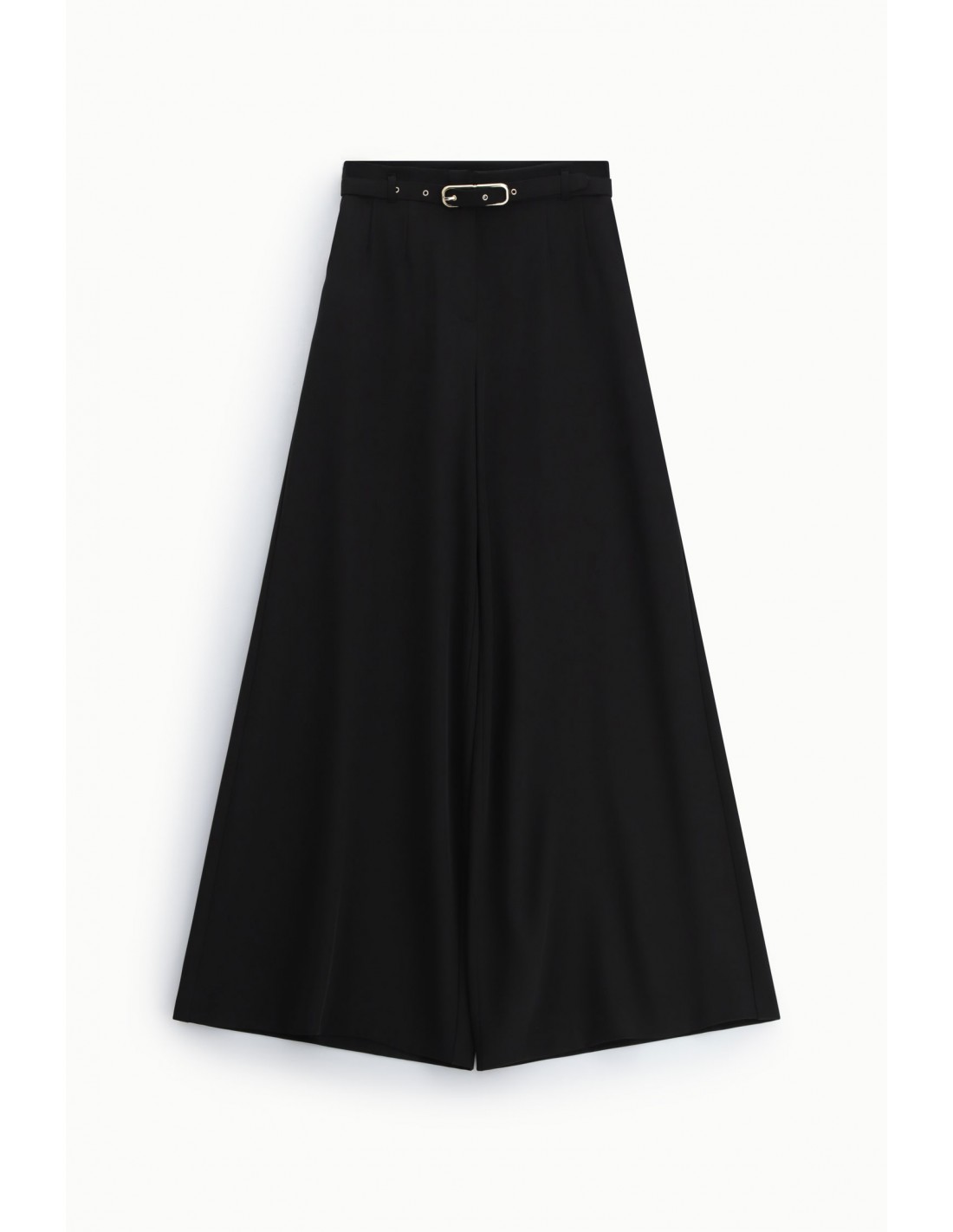 Ce pantalon développe une silhouette palazzo fluide et élégante, construite autour d’une taille haute ceinturée qui structure naturellement la ligne. La ceinture fournie, dotée d’une boucle métallique, permet d’ajuster le porté et de marquer la taille avec précision, tout en apportant une touche contemporaine et urbaine.