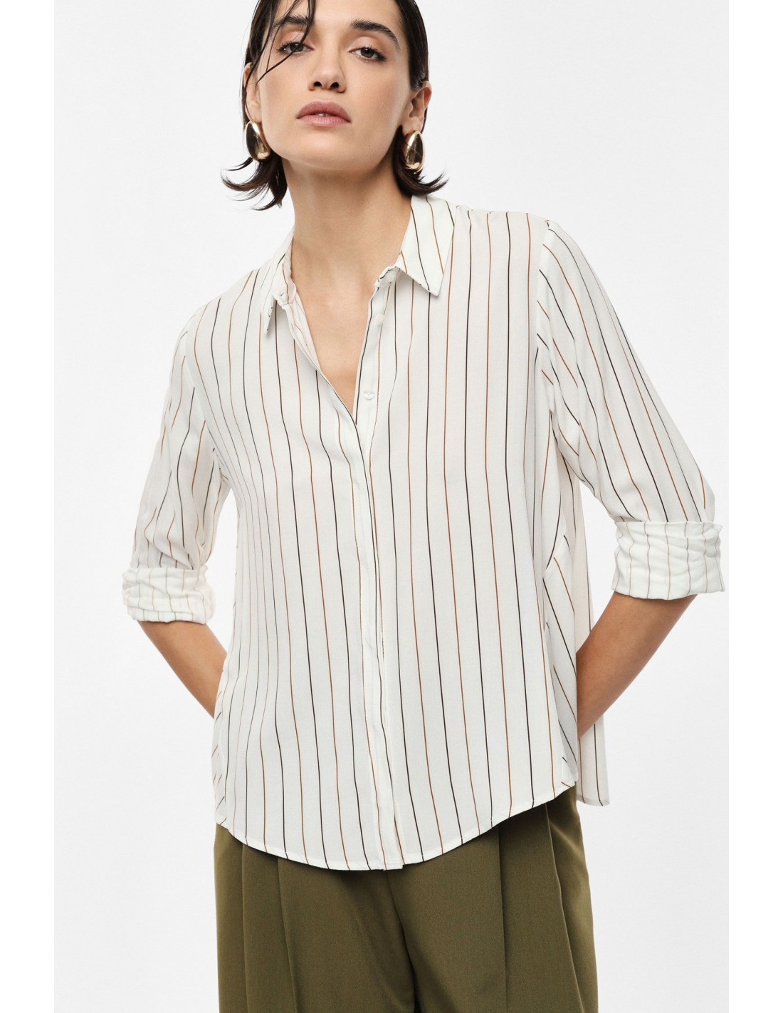 Pièce essentielle du vestiaire quotidien, cette chemise structure immédiatement la silhouette grâce à ses rayures verticales et sa matière fluide. Facile à porter, facile à associer, elle fonctionne aussi bien pour le bureau que pour un look plus détendu. Une base fiable pour composer des tenues complètes sans réfléchir.