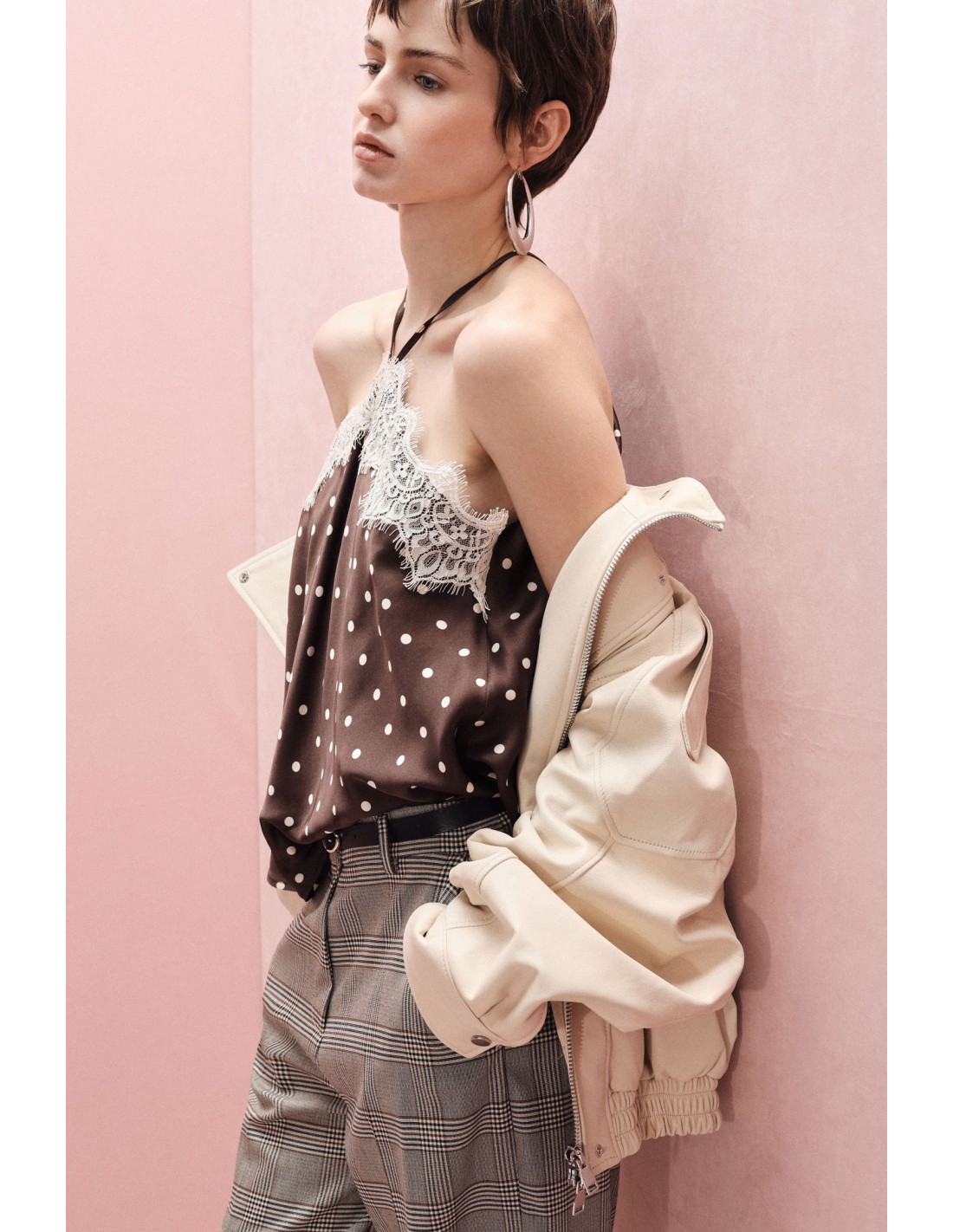 Caraco en crêpe satin à pois avec dentelle – bretelles fines