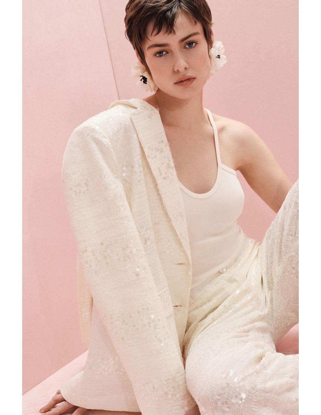 • En tailleur complet avec le pantalon palazzo à sequins pour cérémonie ou soirée