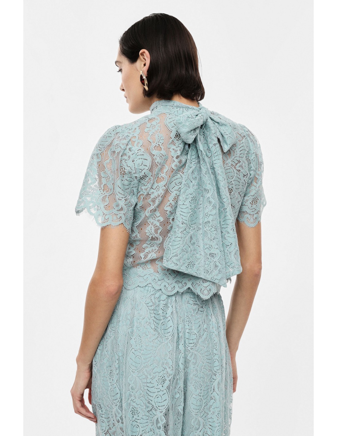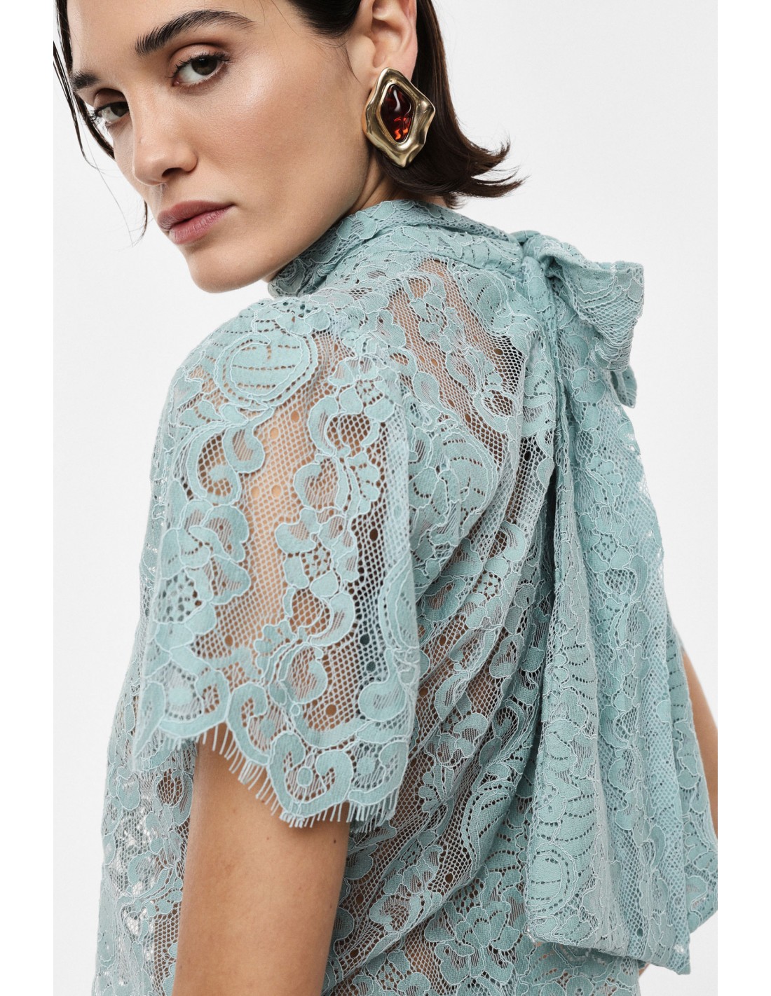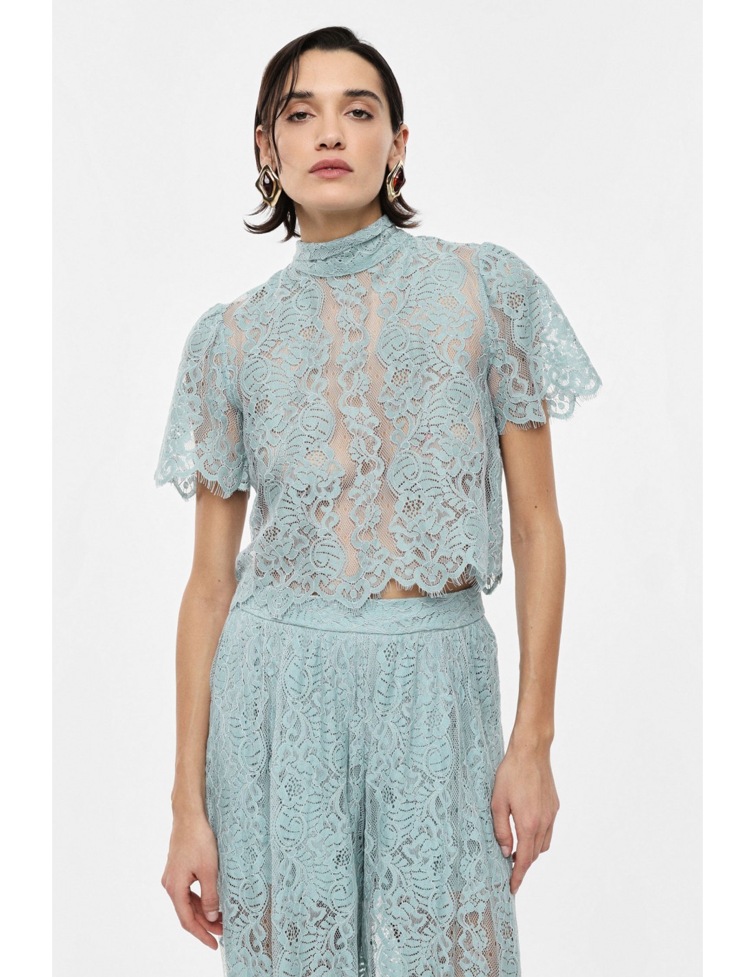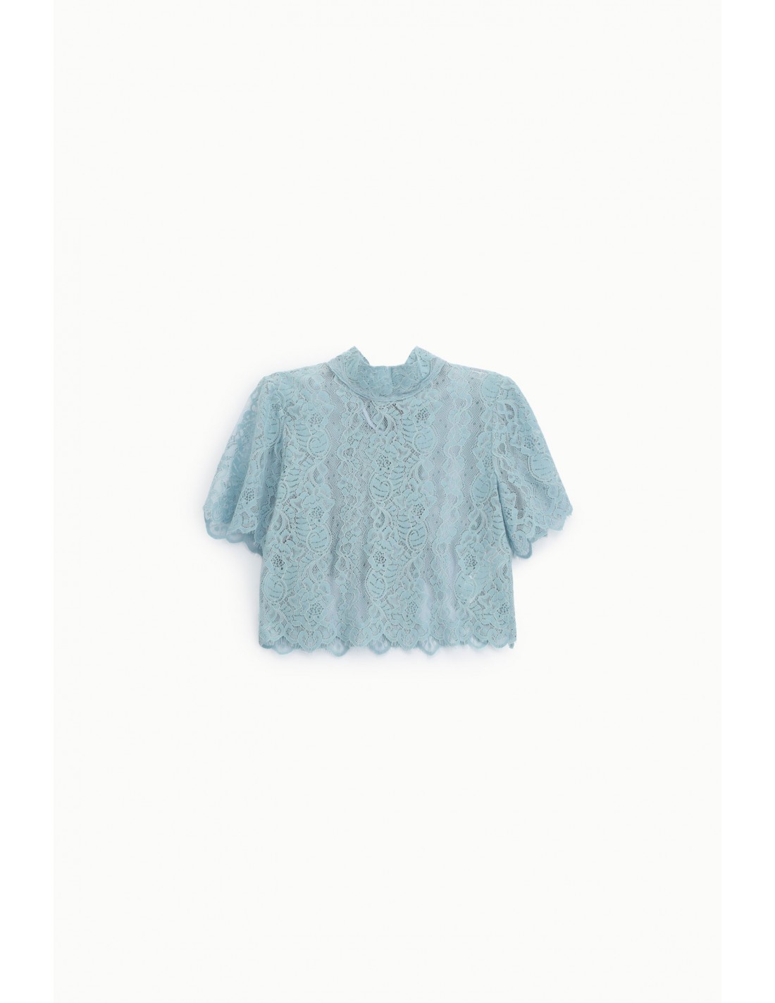 IMPERIAL Femme – Crop top dentelle blanche col montant