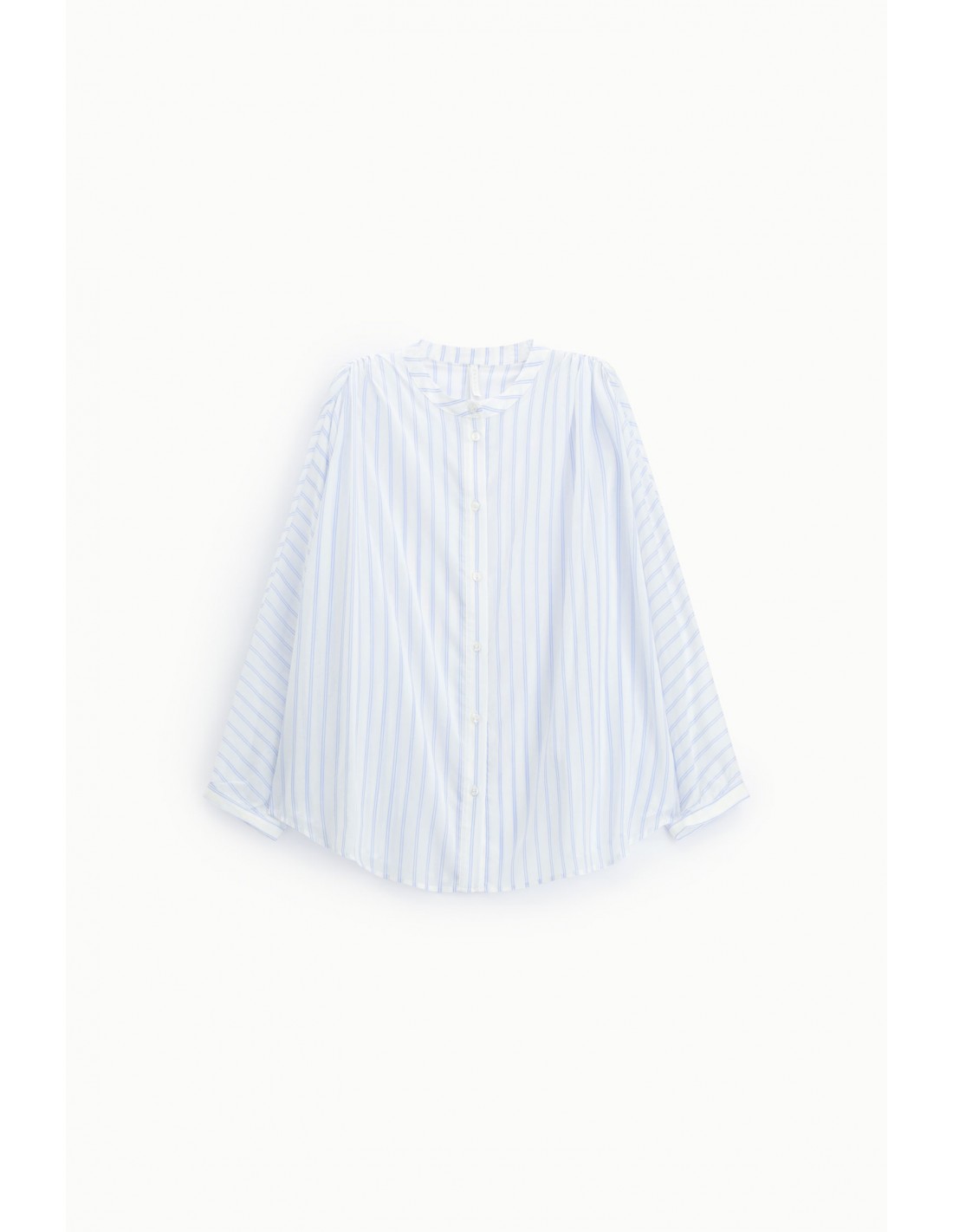 Chemise Imperial Femme à rayures avec col mao et manches chauve-souris, conçue dans une gaze légère et fluide. Sa coupe ample et son col officier apportent une allure contemporaine et élégante, idéale pour composer des silhouettes modernes et aériennes.