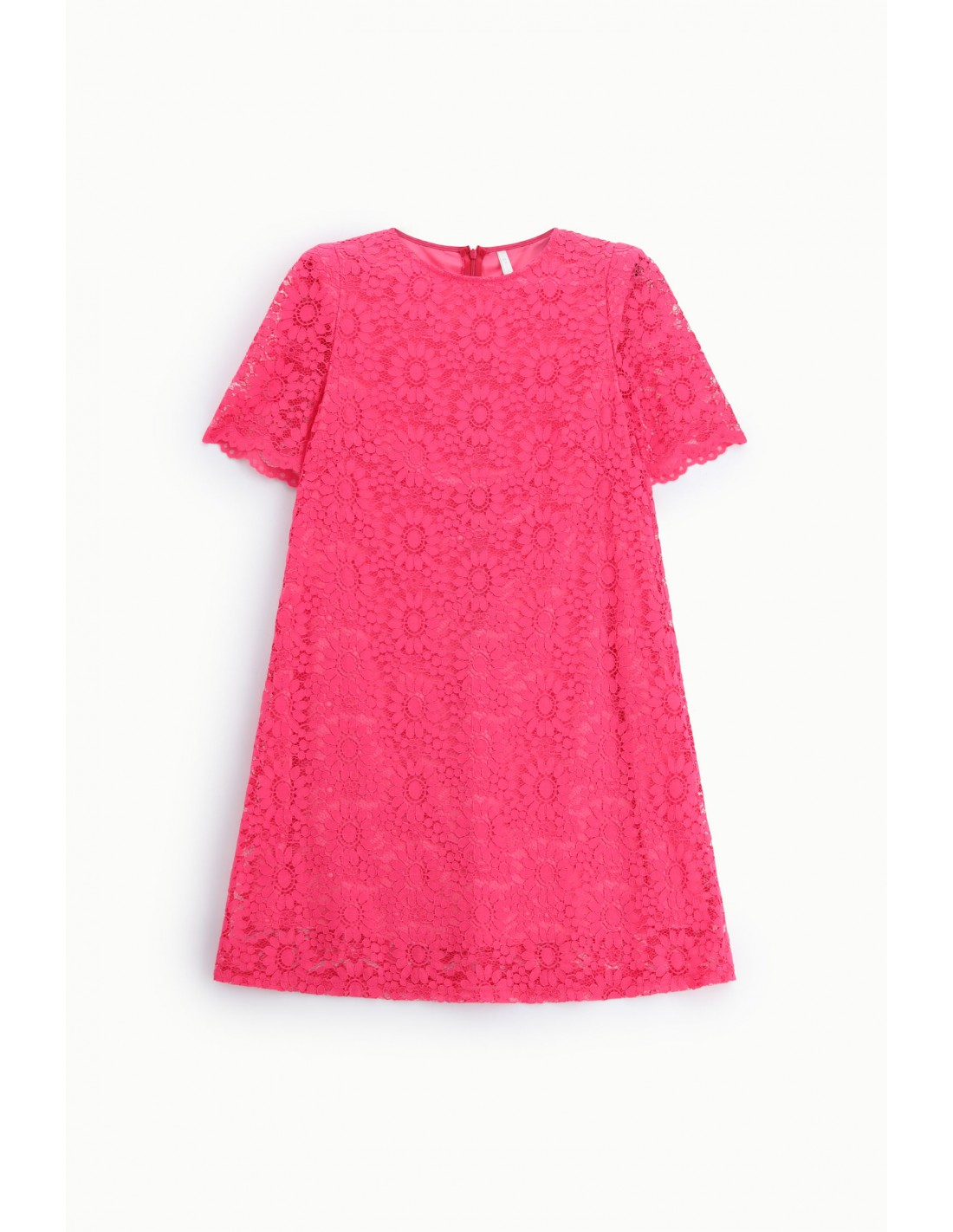 Robe courte Imperial Femme en dentelle florale, coupe droite, col rond et manches courtes.
