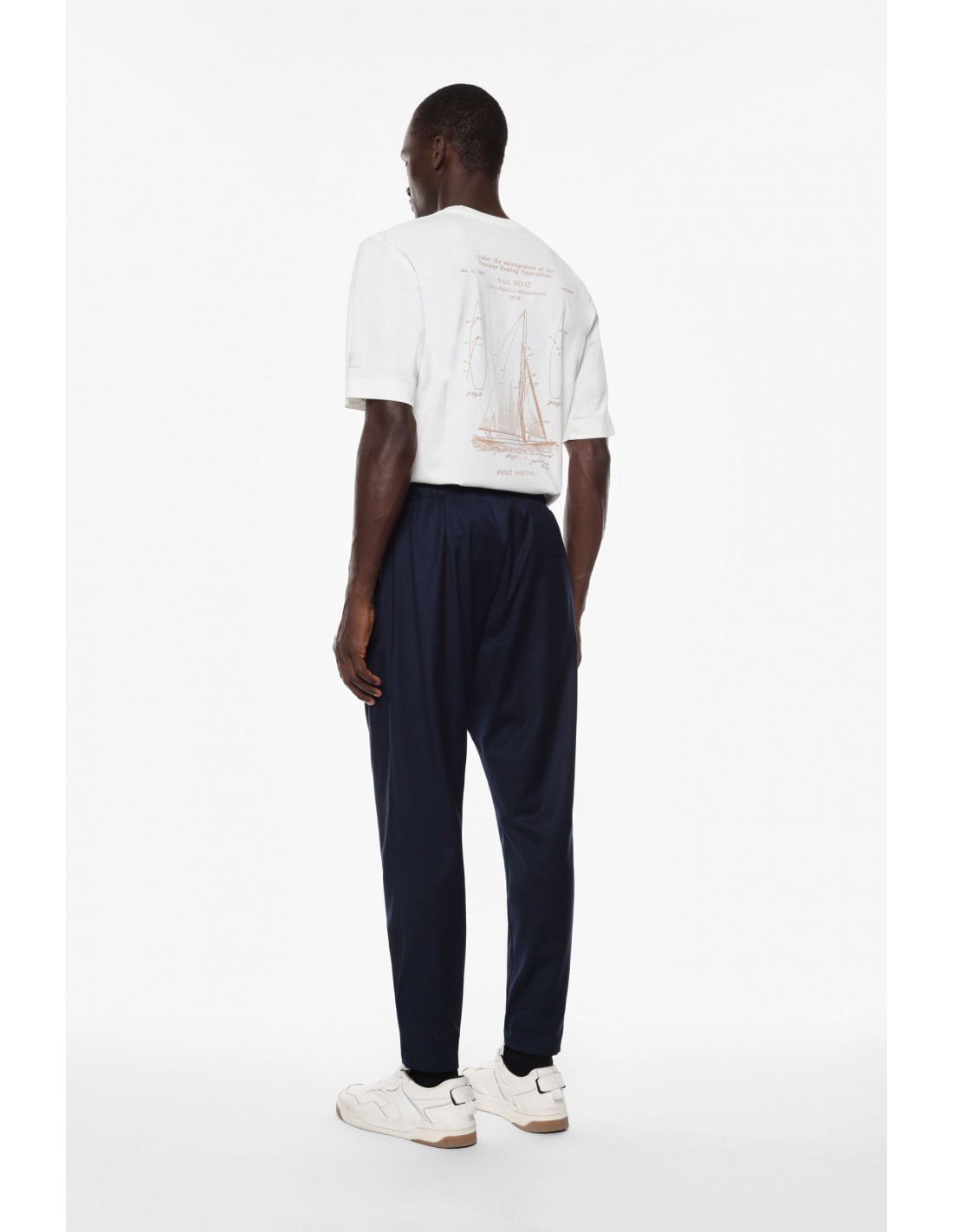 Conçu dans un drap fluide de qualité, il dispose d’une taille montée élastiquée avec cordon de serrage, pratique et élégante. Les poches avant droites et la poche passepoilée arrière complètent cette pièce versatile, disponible dans de nombreux coloris pour s’adapter à tous les styles.