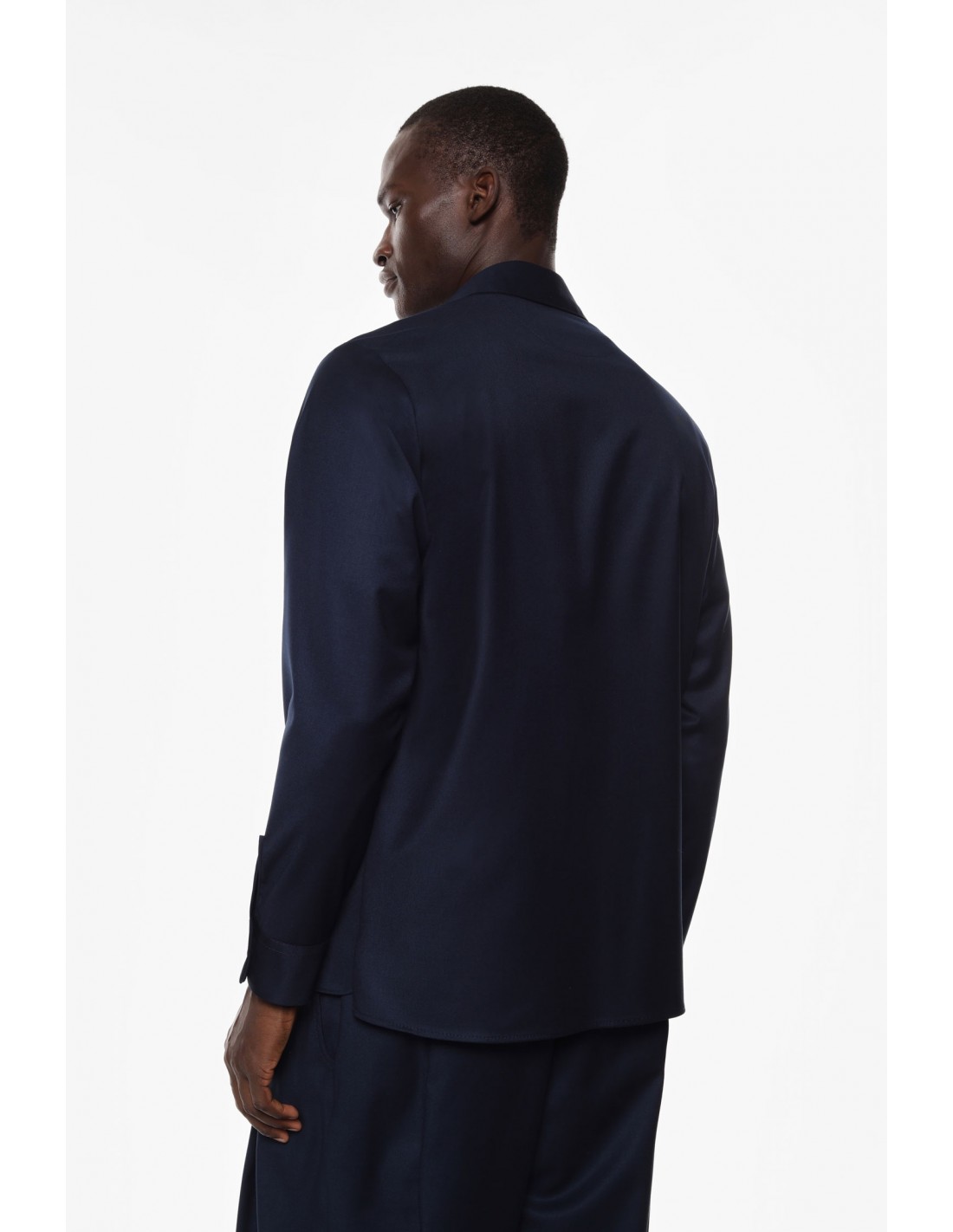 Confectionnée en drap sergé, elle se distingue par sa texture fluide et sa tenue impeccable. Proposée dans de nombreux coloris unis, elle s’adapte aussi bien à une tenue casual qu’à un look habillé. À porter en superposition comme une veste d’intersaison ou directement à même la peau, comme une chemise.